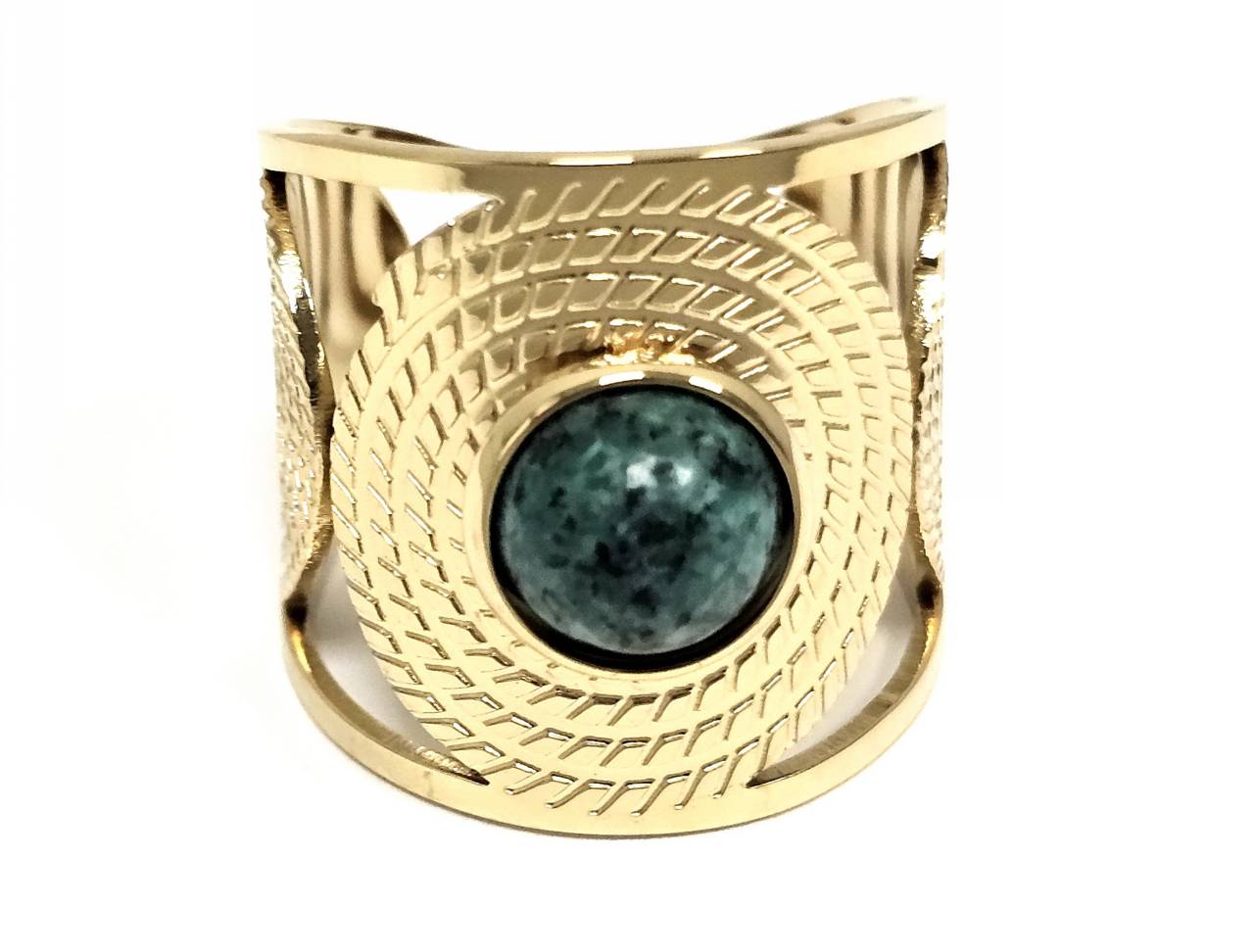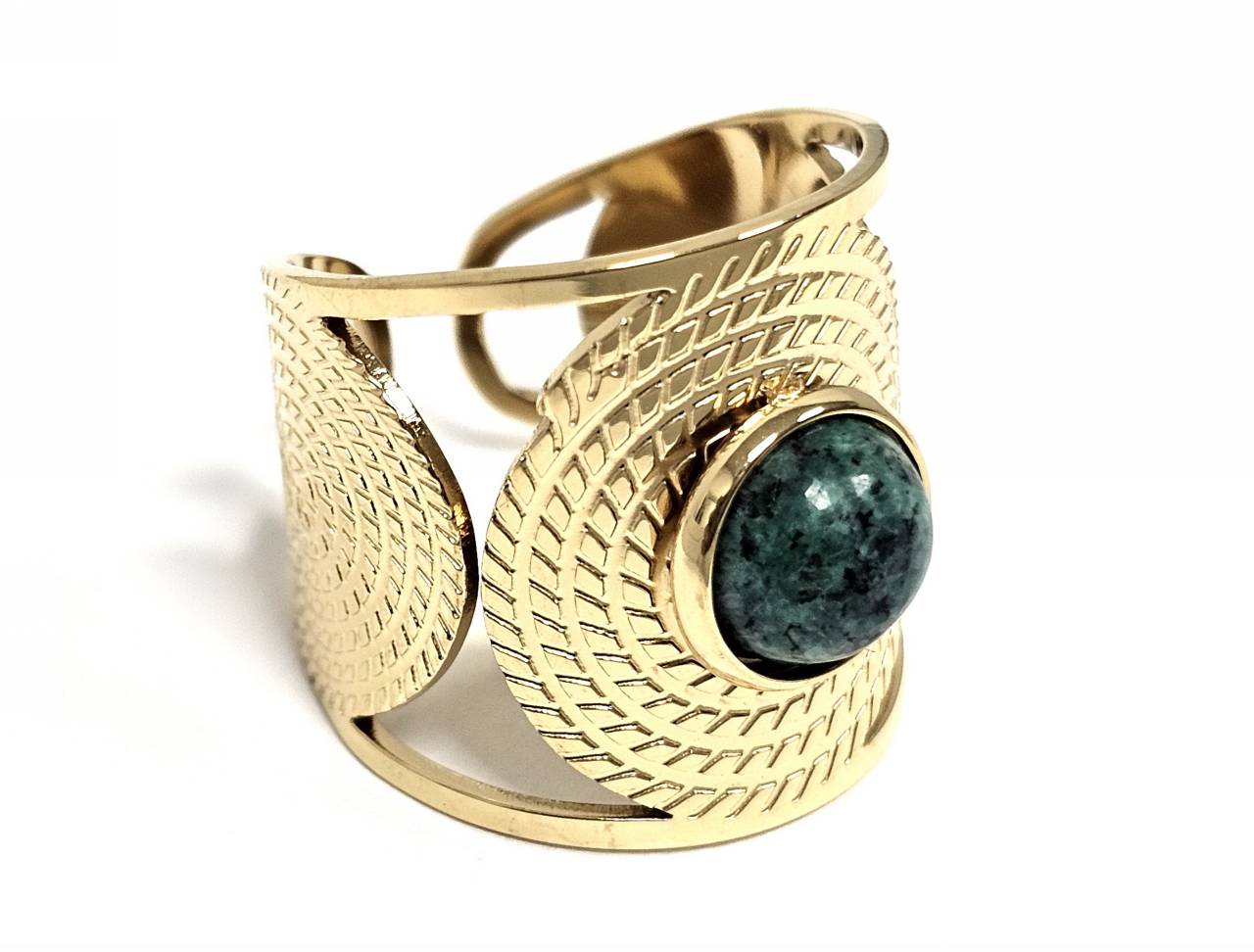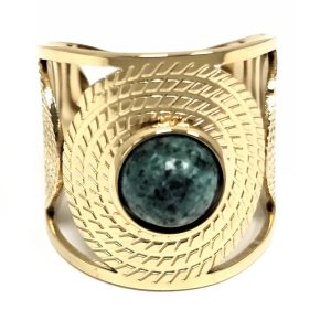 Δαχτυλίδι Πέτρα ατσάλι 316L, με μαλαχίτη σε χρώμα Χρυσαφί