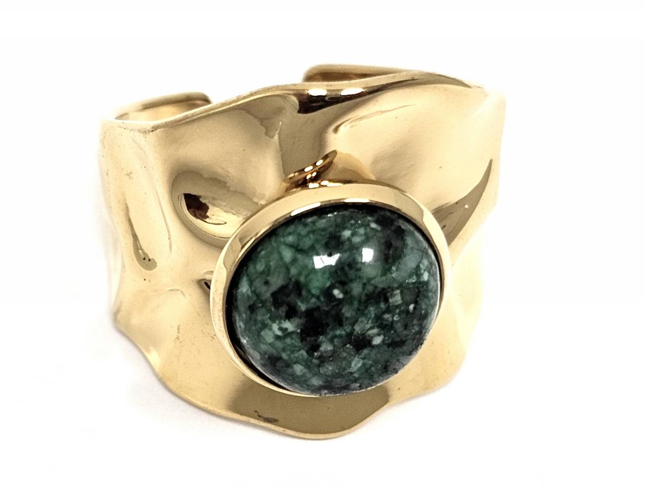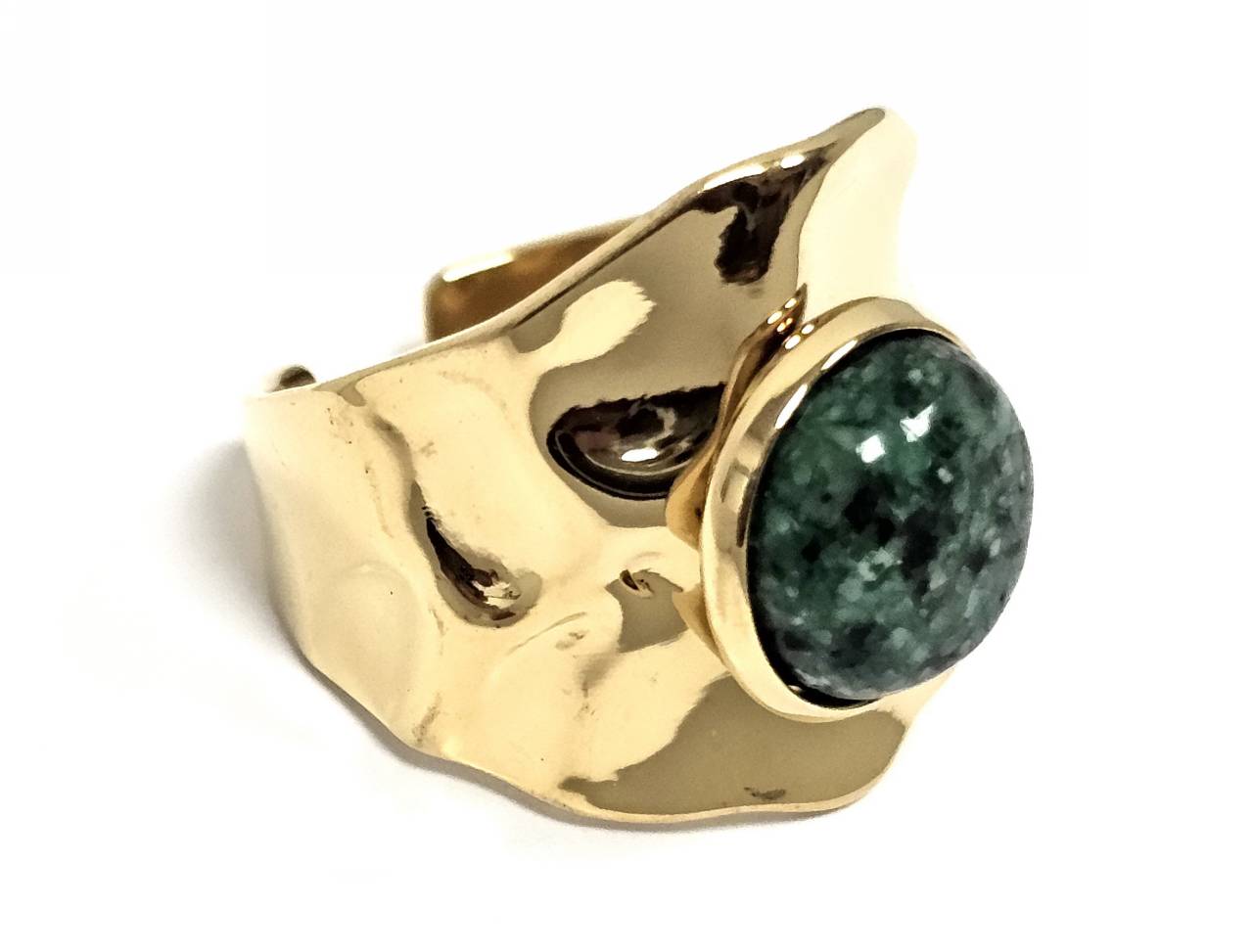Δαχτυλίδι Πέτρα ατσάλι 316L, με μαλαχίτη σε χρώμα Χρυσαφί