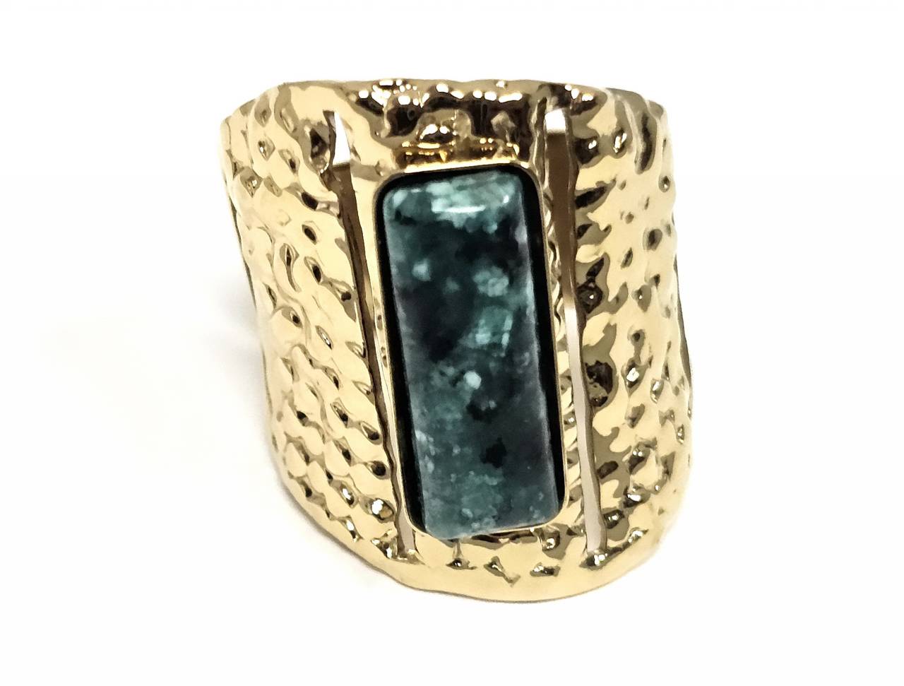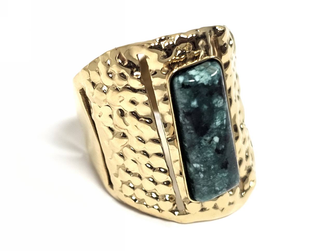 Δαχτυλίδι Πέτρα ατσάλι 316L, με μαλαχίτη σε χρώμα Χρυσαφί