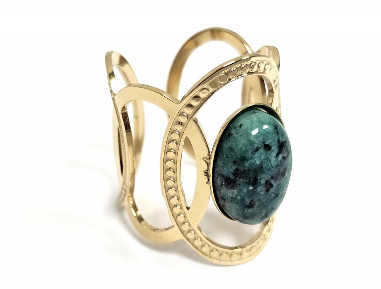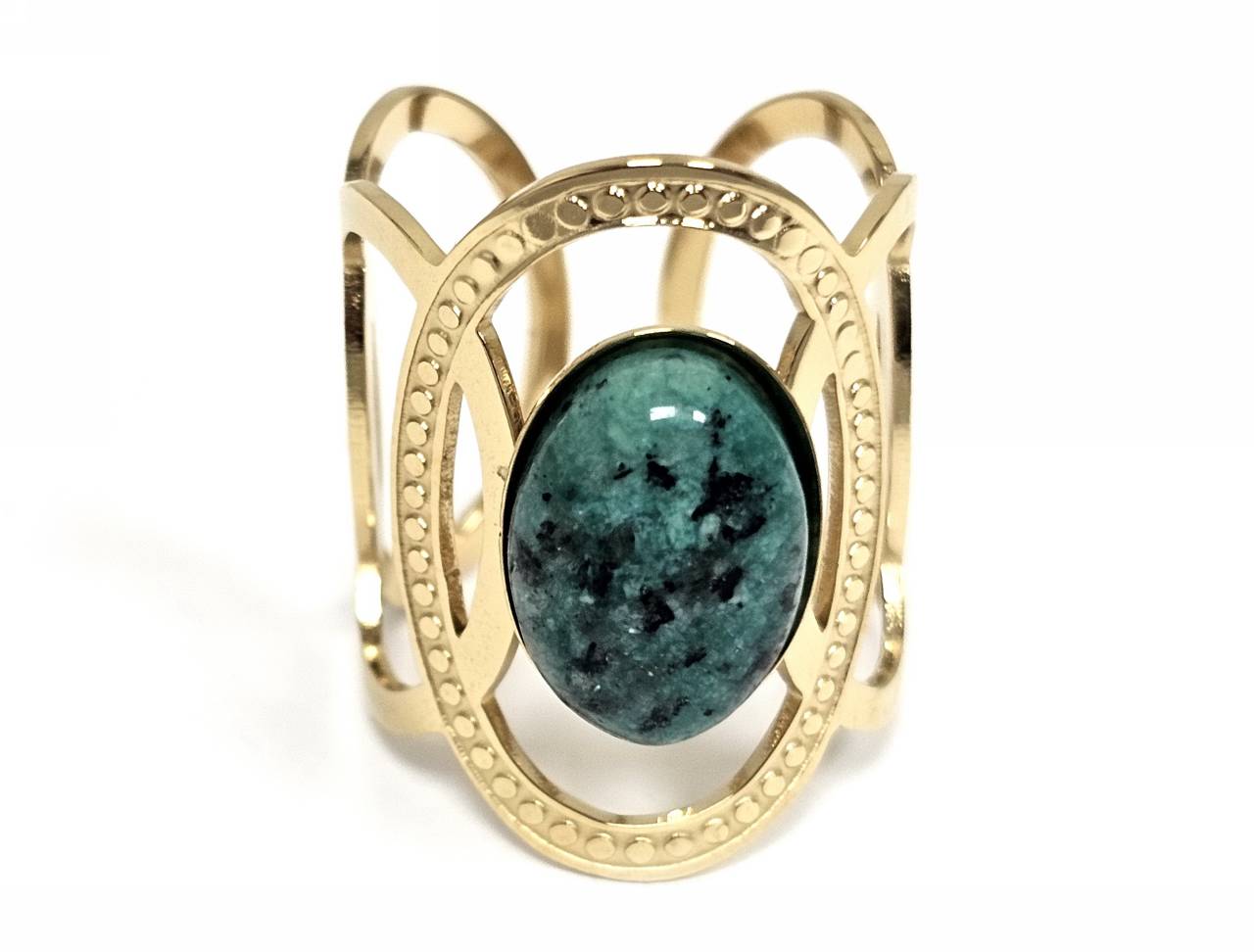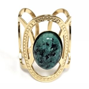 Δαχτυλίδι Πέτρα ατσάλι 316L, με μαλαχίτη σε χρώμα Χρυσαφί