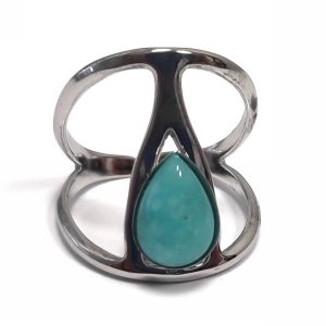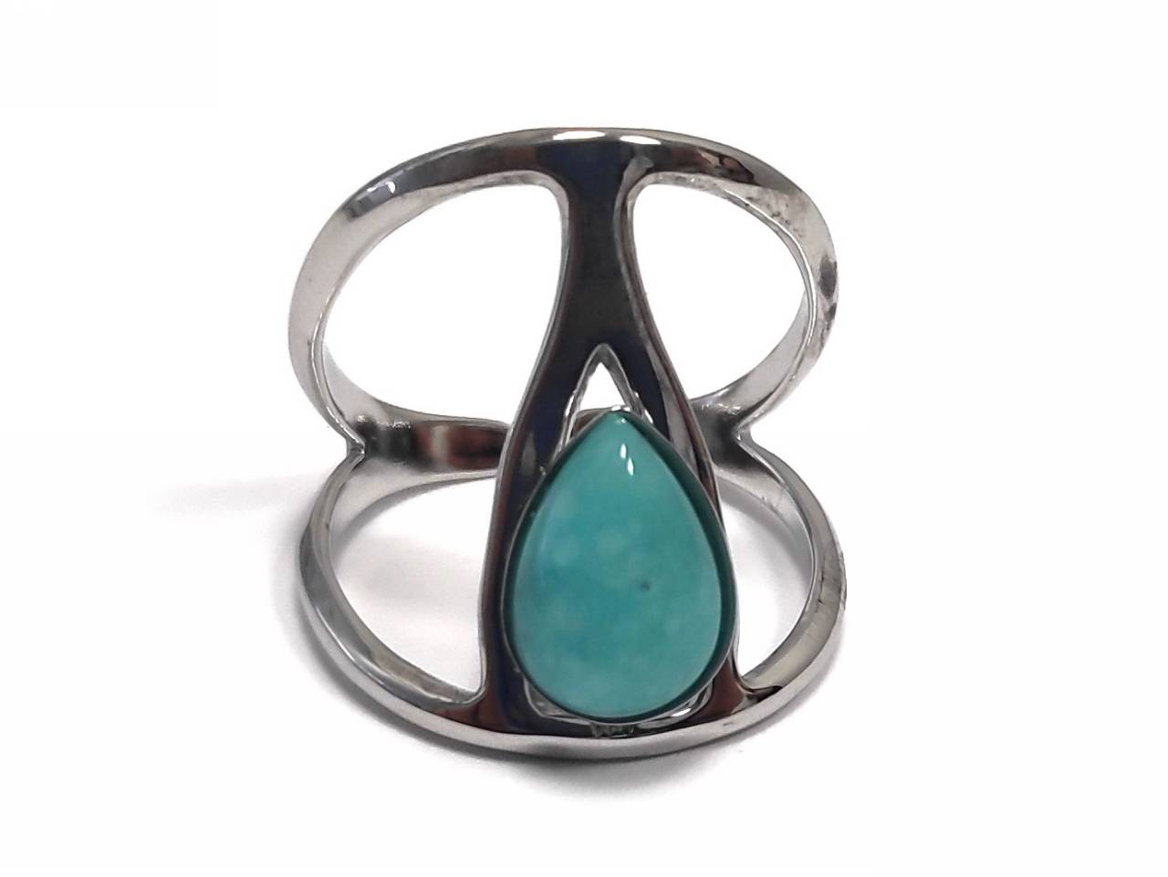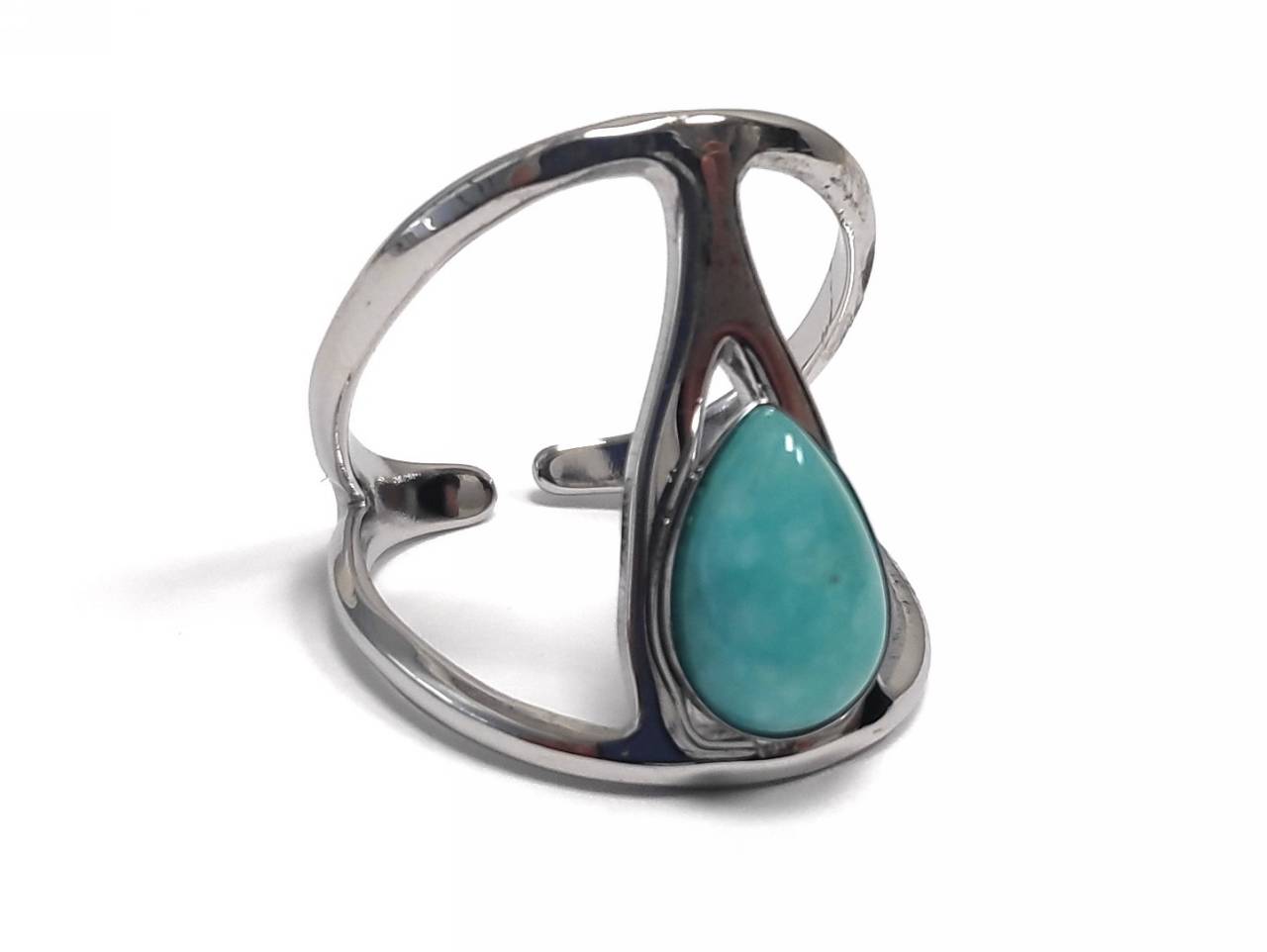 Δαχτυλίδι Πέτρα 316L, με τυρκουάζ σε χρώμα Ασημί