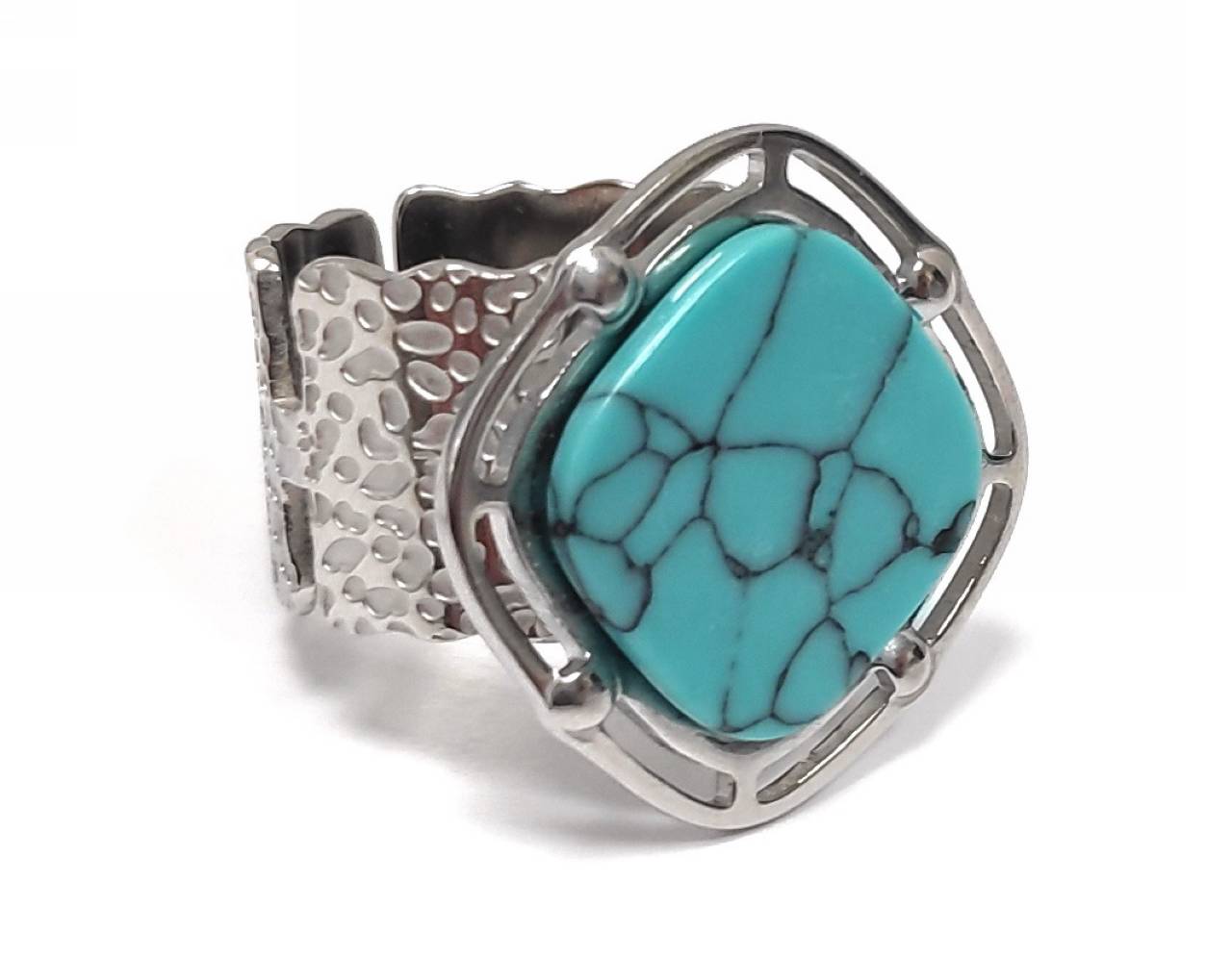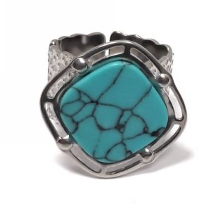 Δαχτυλίδι Πέτρα 316L, με τυρκουάζ σε χρώμα Ασημί