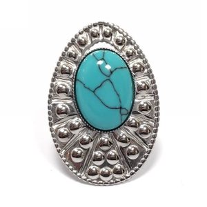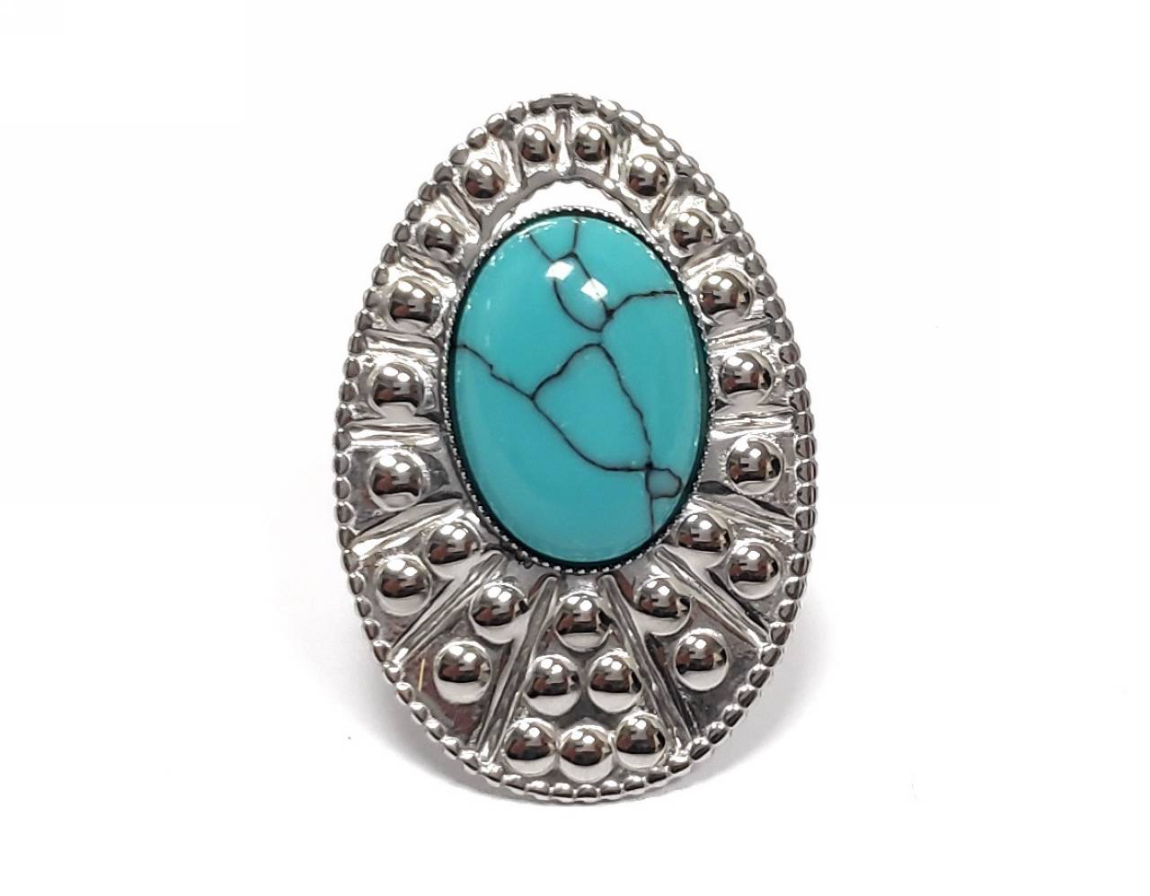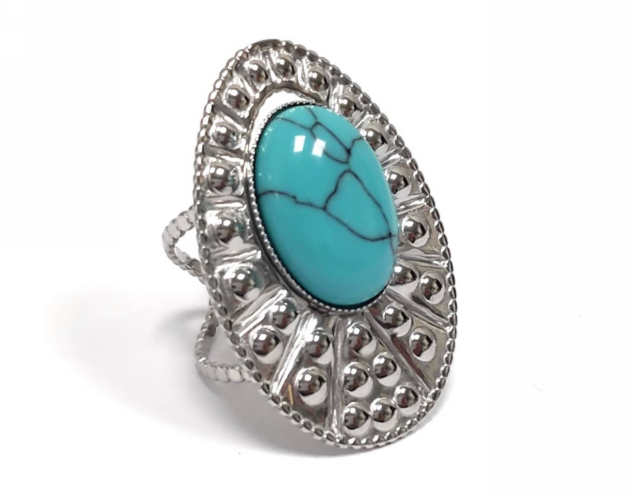 Δαχτυλίδι Πέτρα 316L, με τυρκουάζ σε χρώμα Ασημί