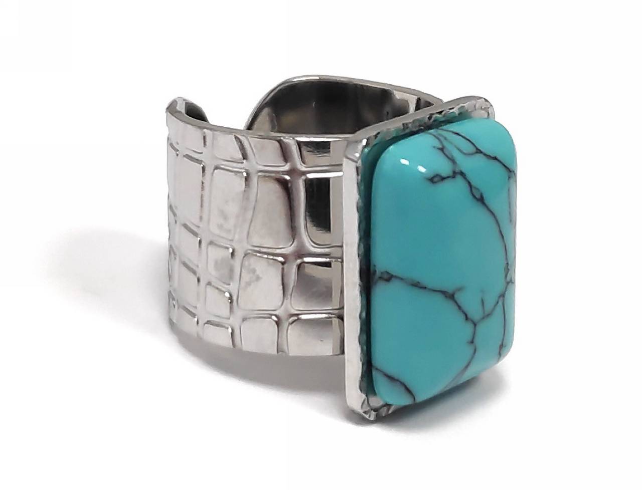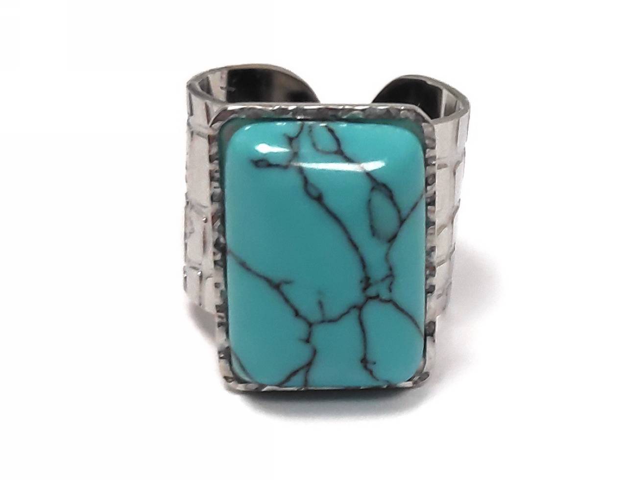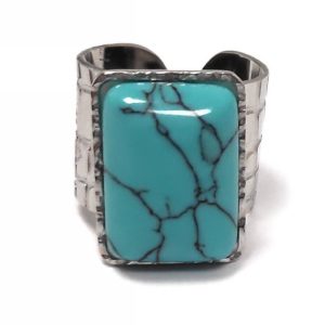 Δαχτυλίδι Πέτρα 316L, με τυρκουάζ σε χρώμα Ασημί