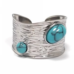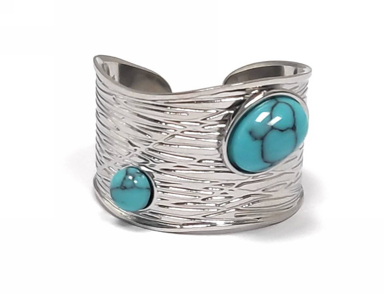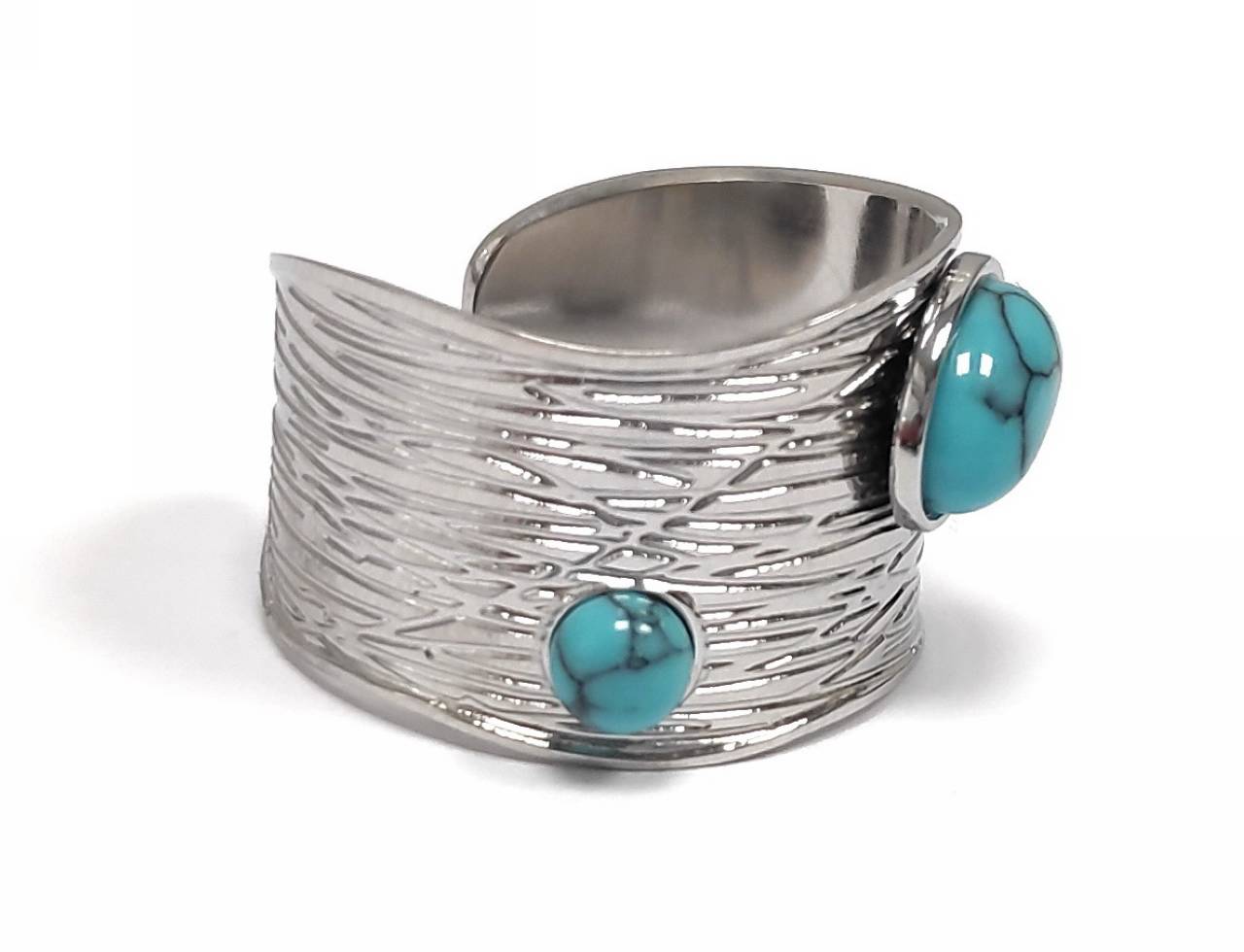 Δαχτυλίδι Πέτρα 316L, με τυρκουάζ σε χρώμα Ασημί