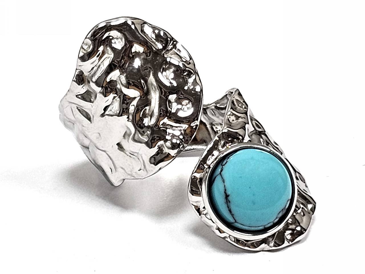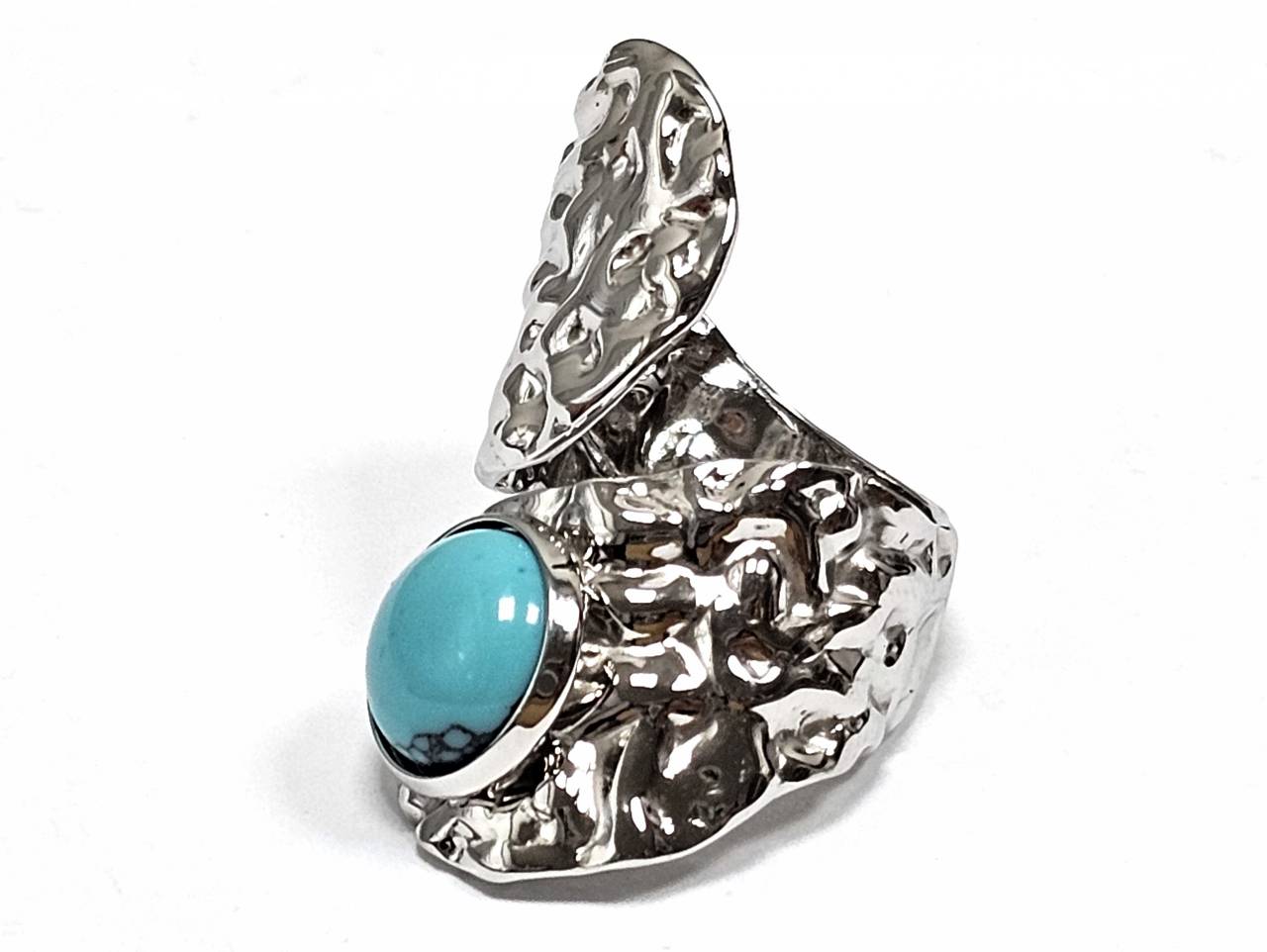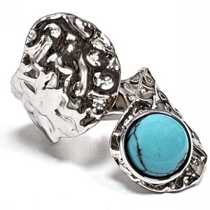 Δαχτυλίδι Πέτρα 316L, με τυρκουάζ σε χρώμα Ασημί