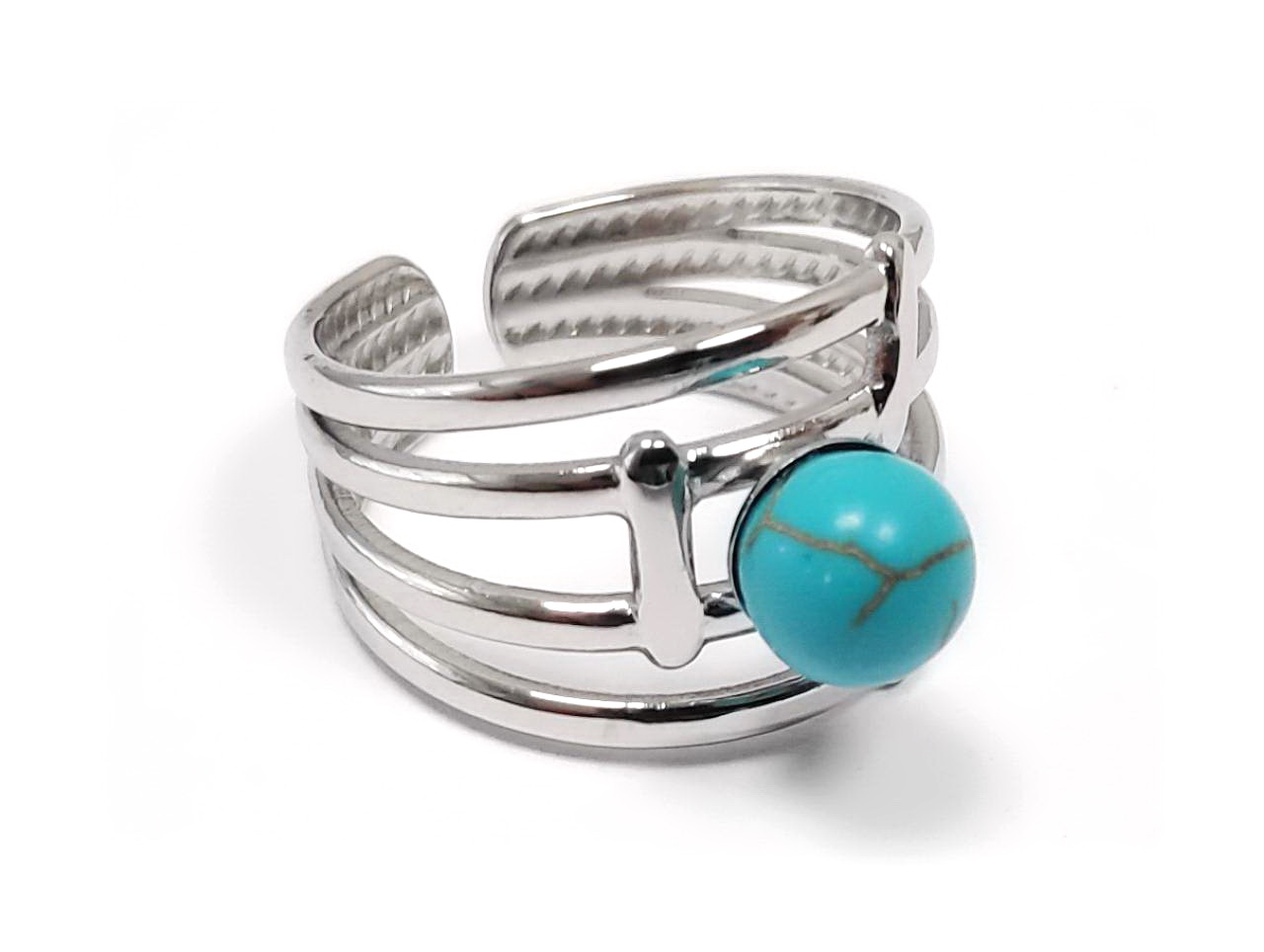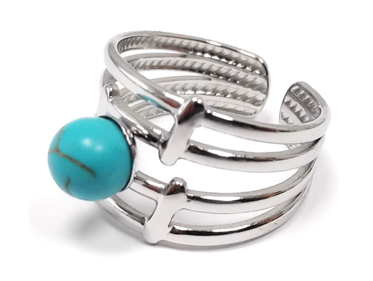 Δαχτυλίδι Πέτρα 316L, με τυρκουάζ σε χρώμα Ασημί