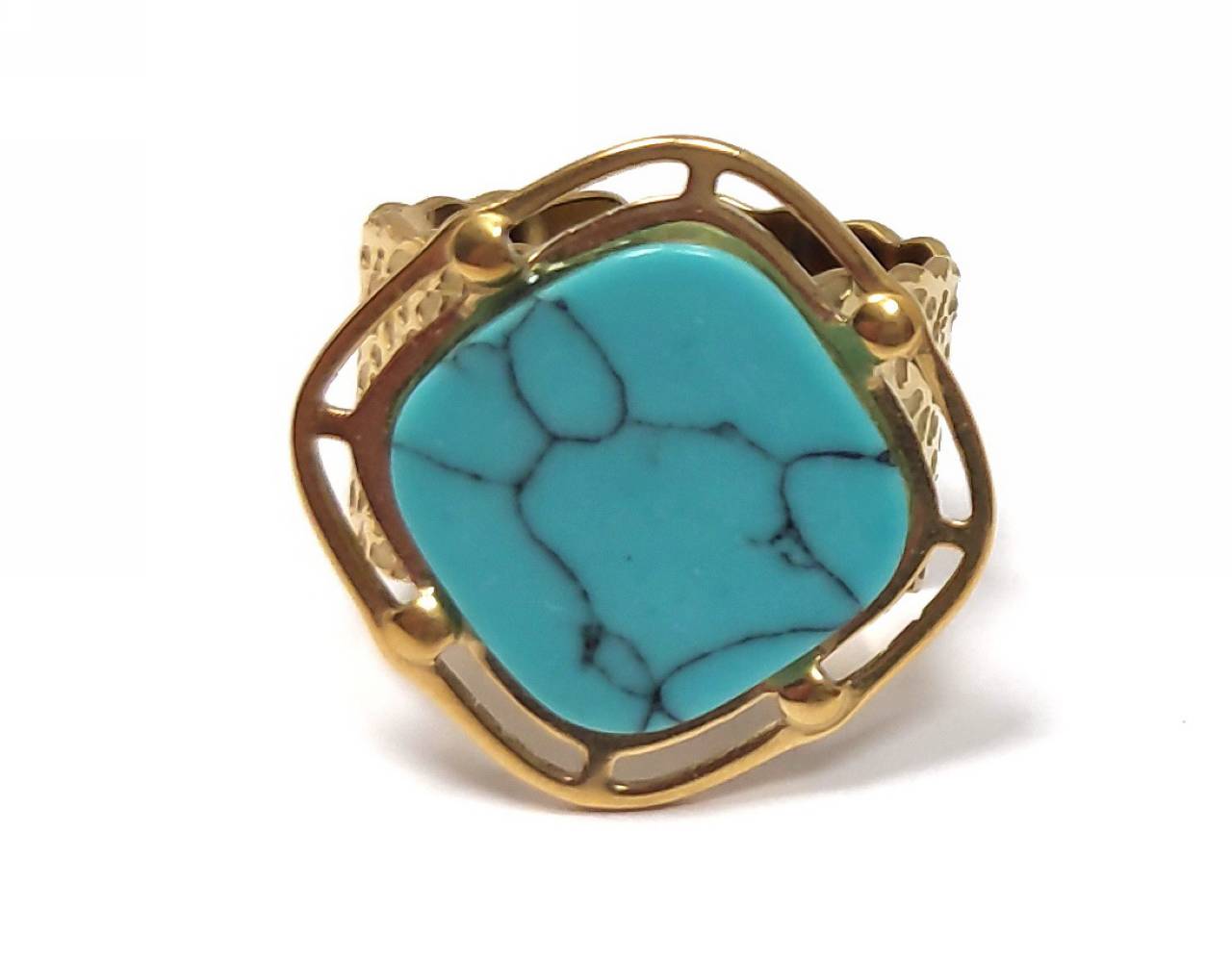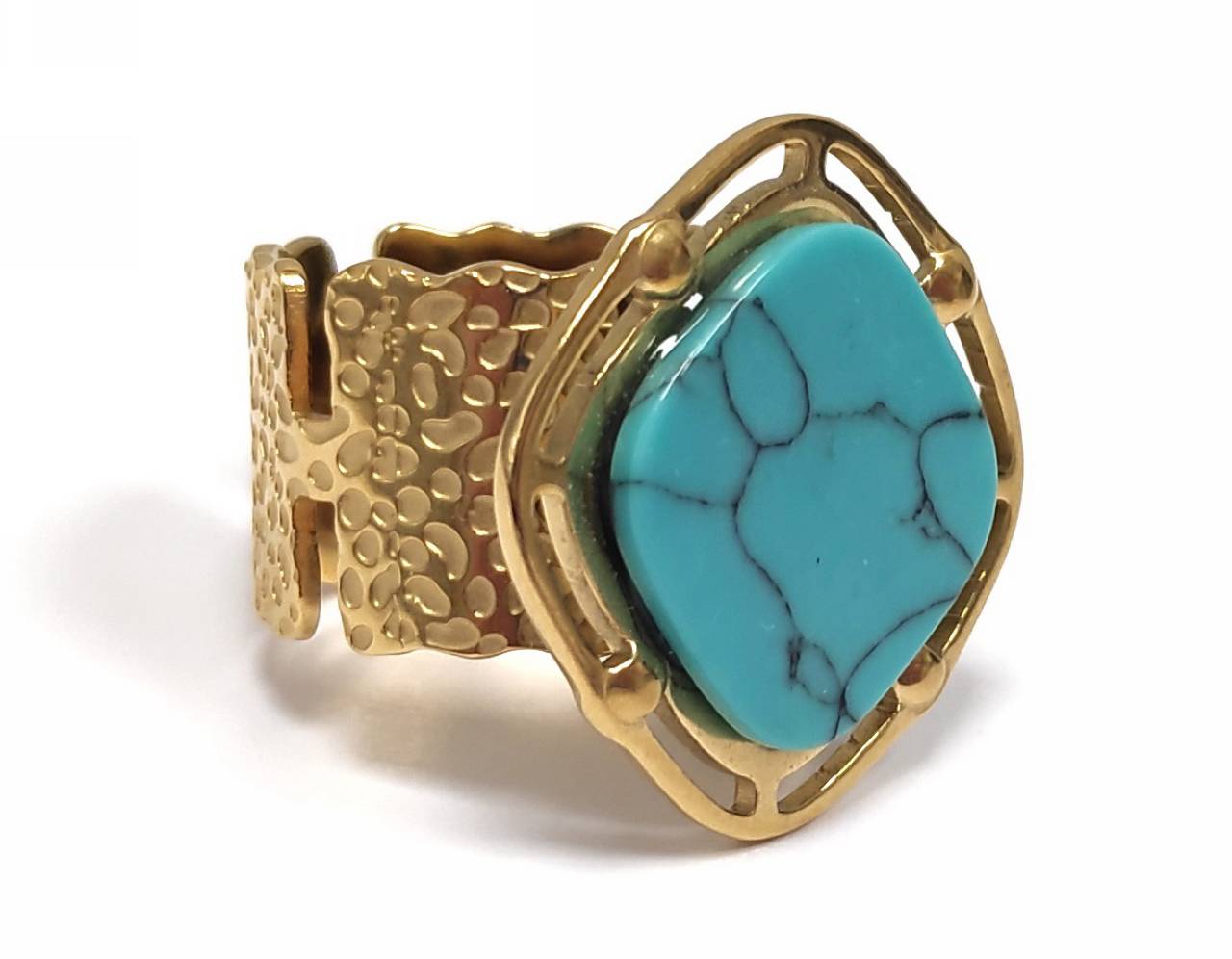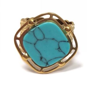 Δαχτυλίδι Πέτρα 316L, με τυρκουάζ σε χρώμα Χρυσαφί