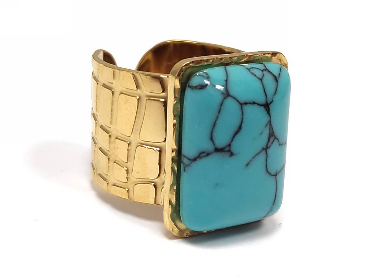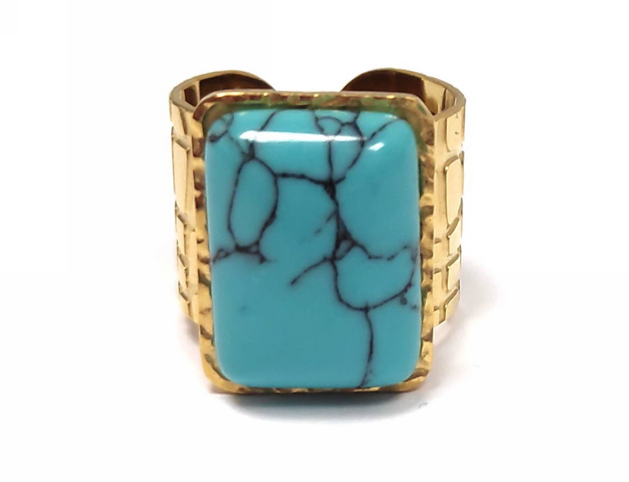 Δαχτυλίδι Πέτρα 316L, με τυρκουάζ σε χρώμα Χρυσαφί