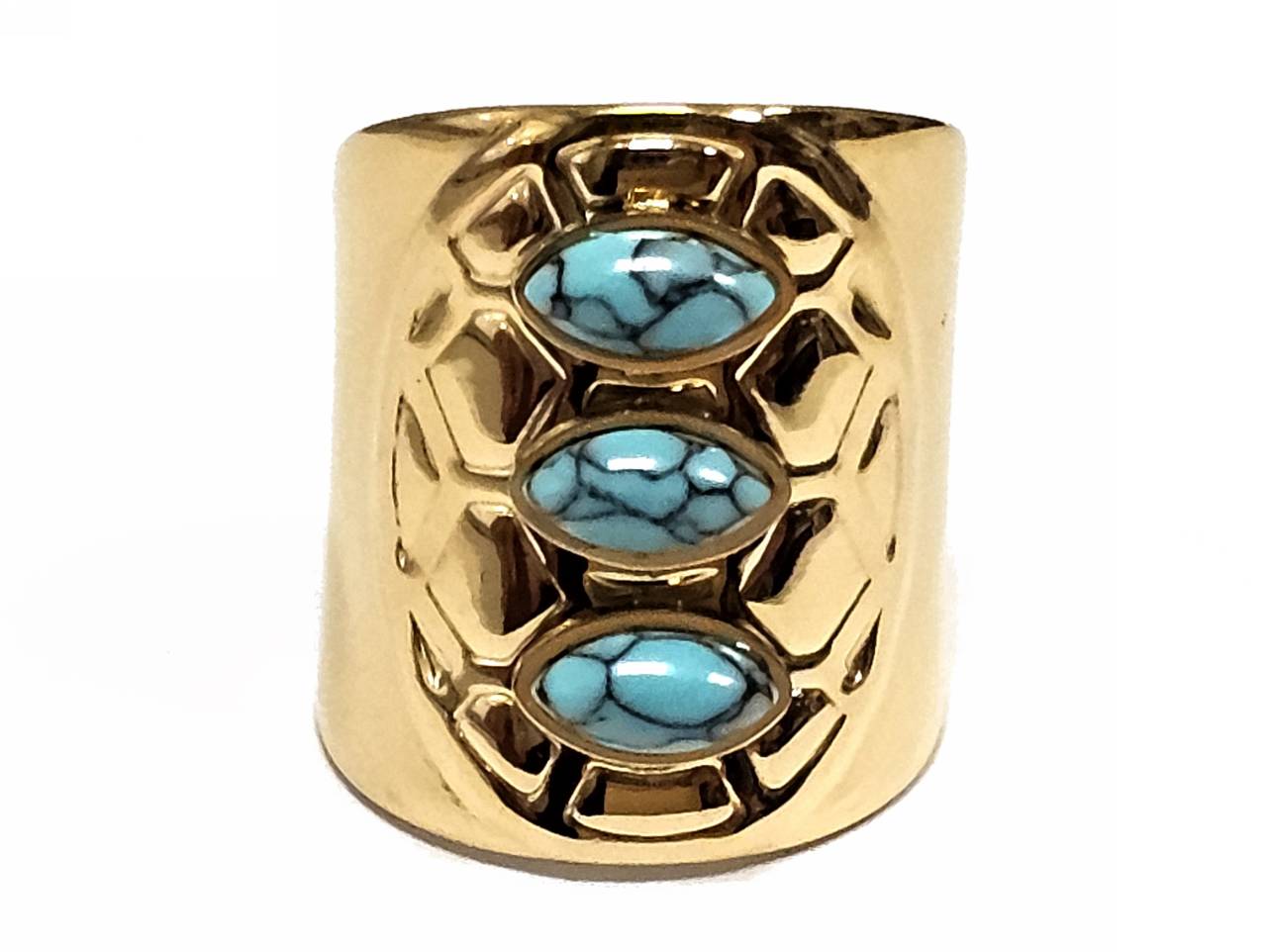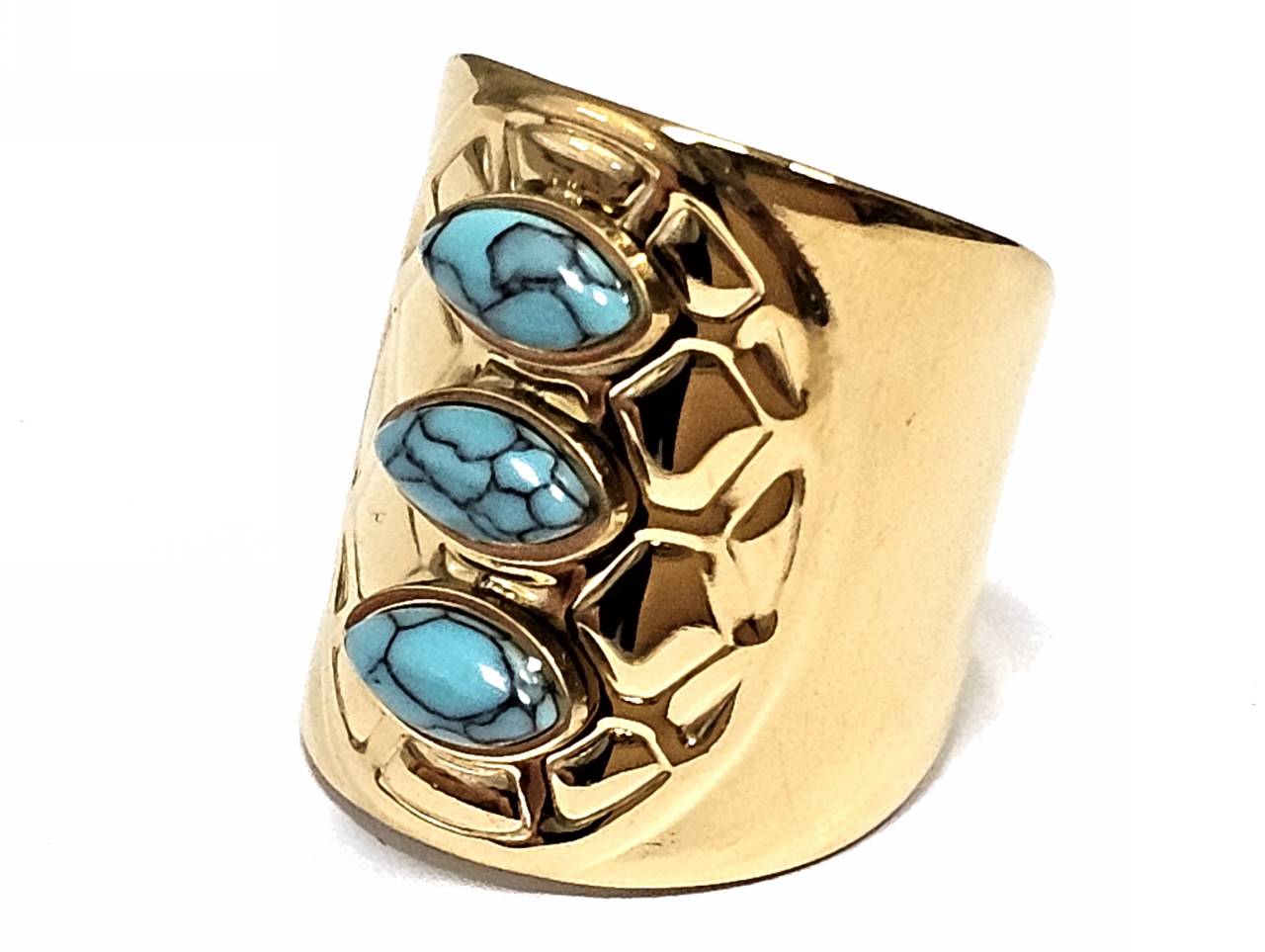 Δαχτυλίδι Πέτρα 316L, με τυρκουάζ σε χρώμα Χρυσαφί