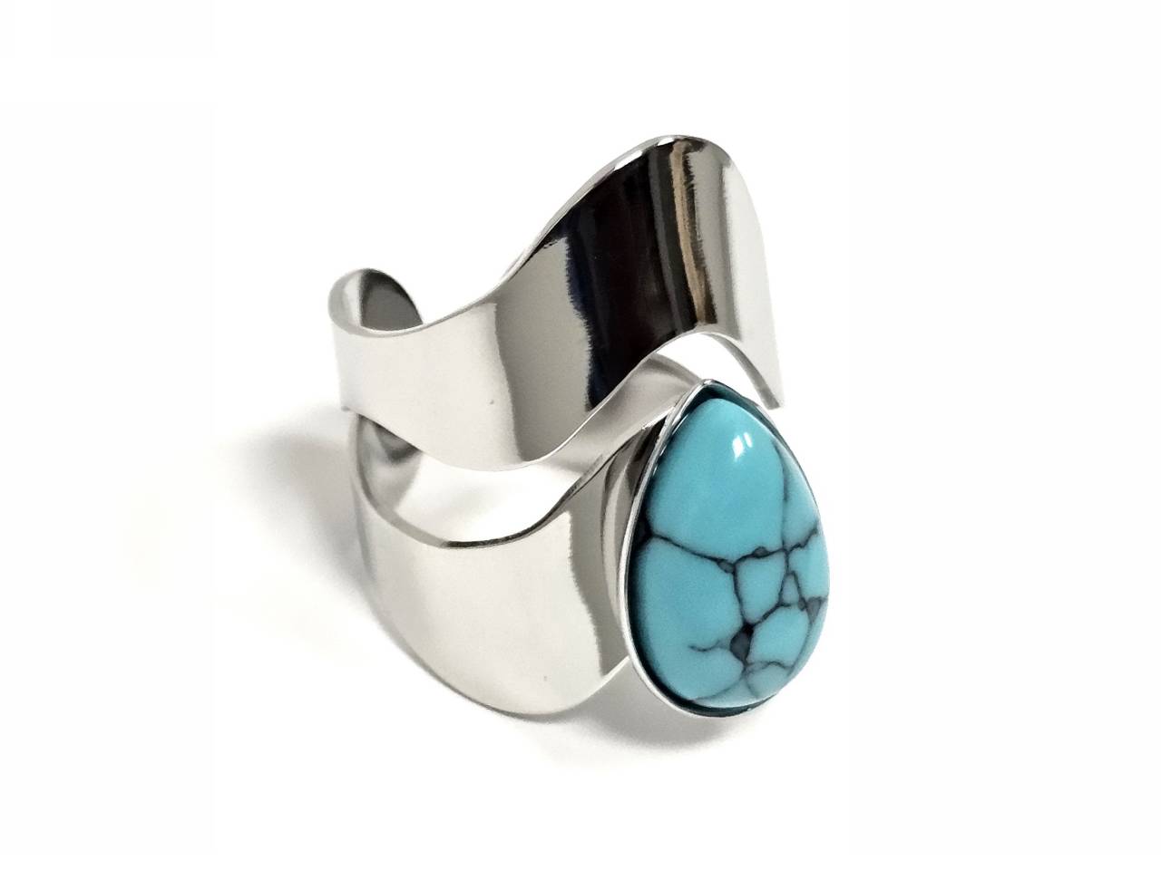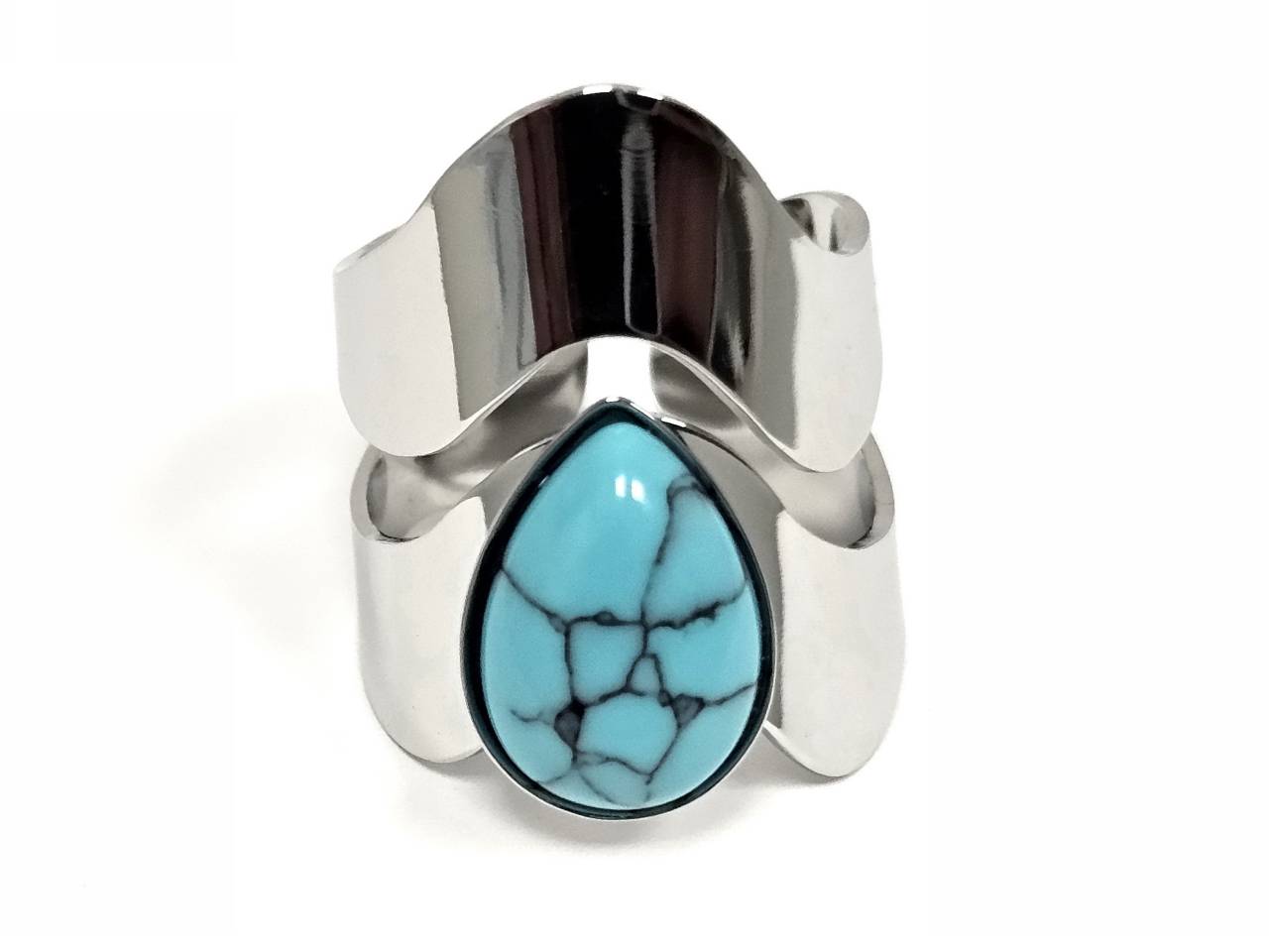Δαχτυλίδι Πέτρα ατσάλι 316L, με τυρκουάζ σε χρώμα Ασημί