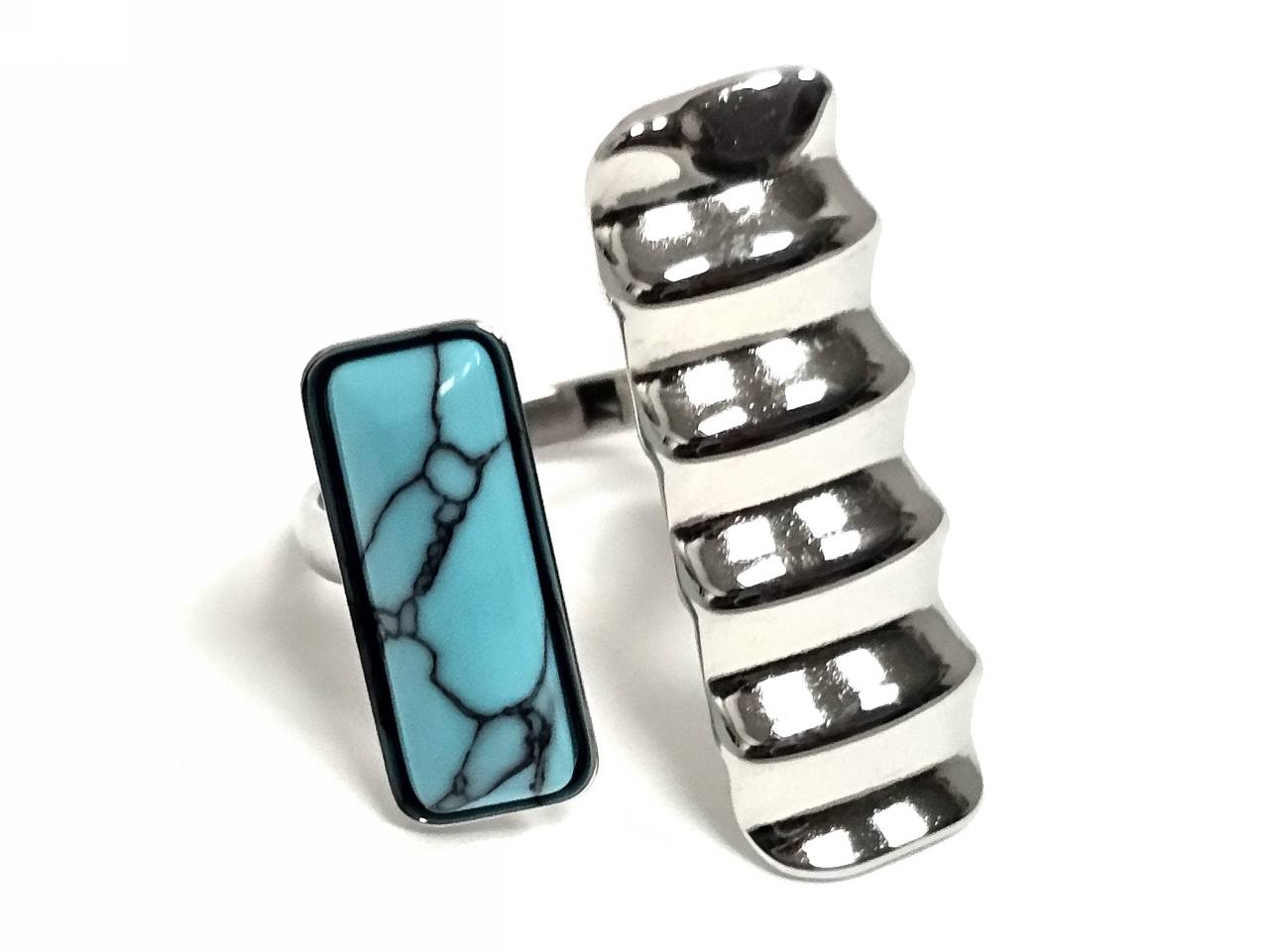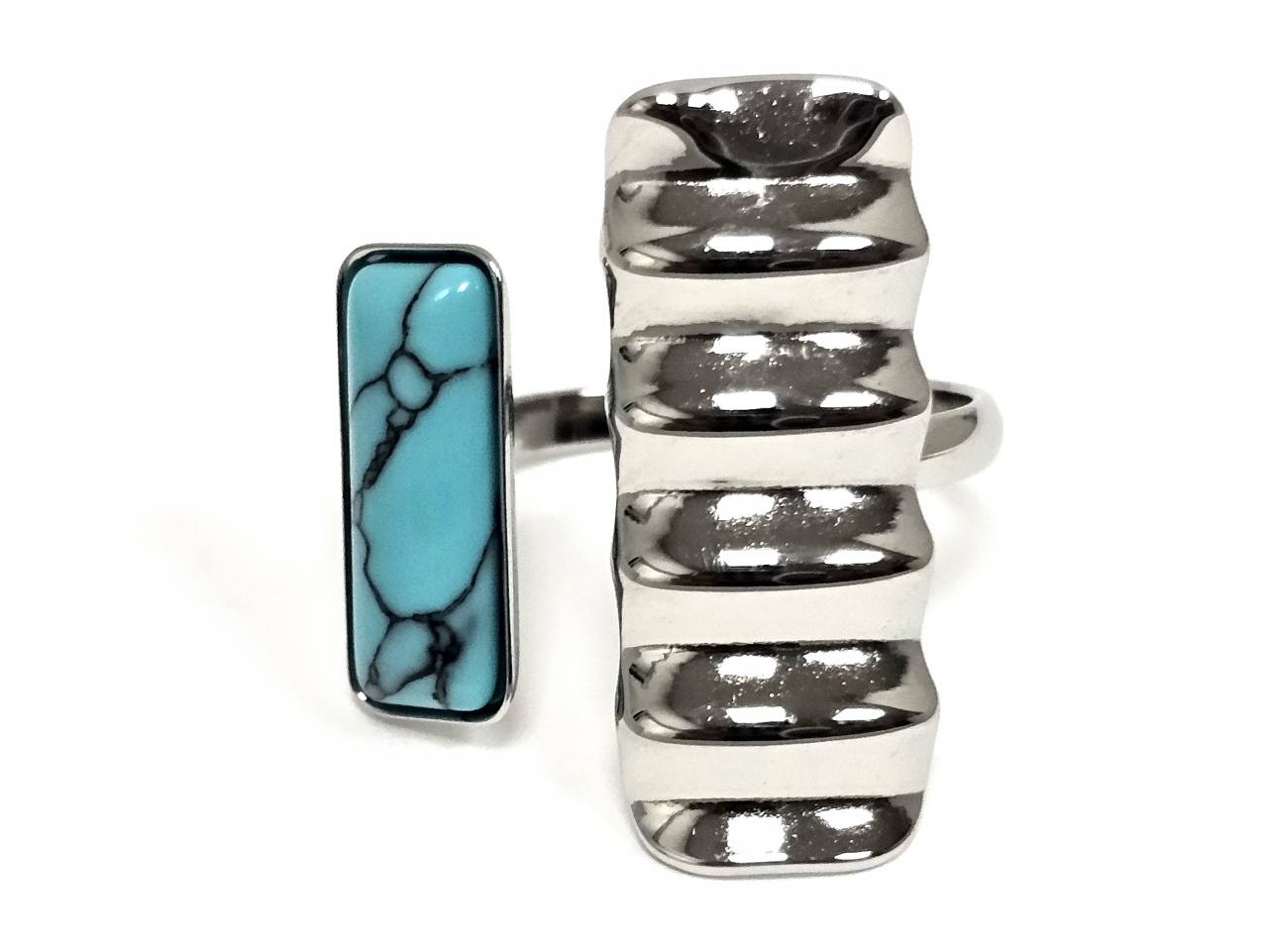 Δαχτυλίδι Πέτρα ατσάλι 316L, με τυρκουάζ σε χρώμα Ασημί