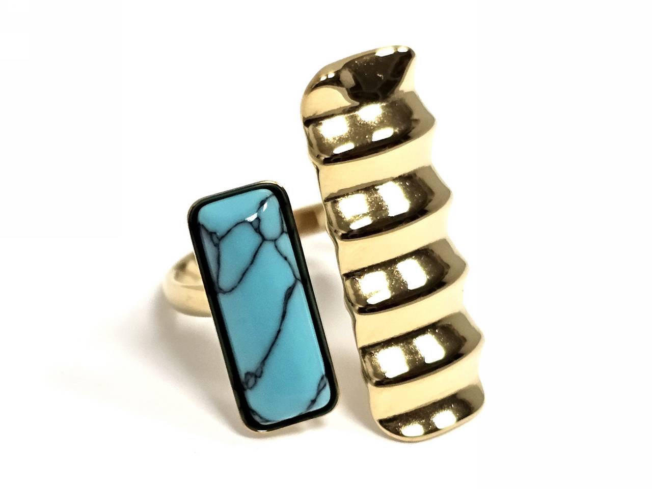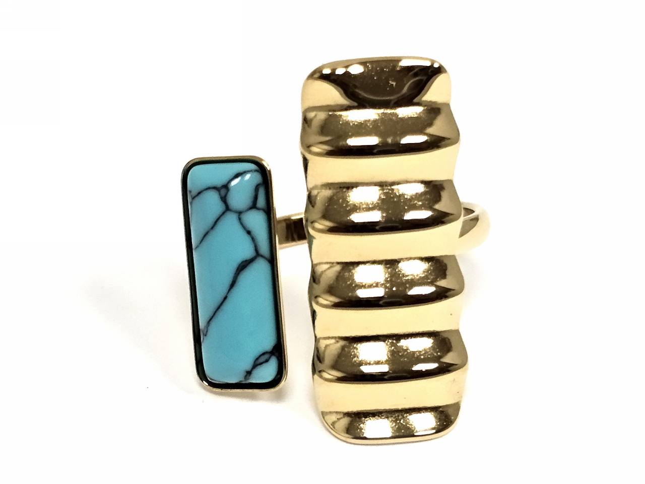Δαχτυλίδι Πέτρα ατσάλι 316L, με τυρκουάζ σε χρώμα Χρυσαφί