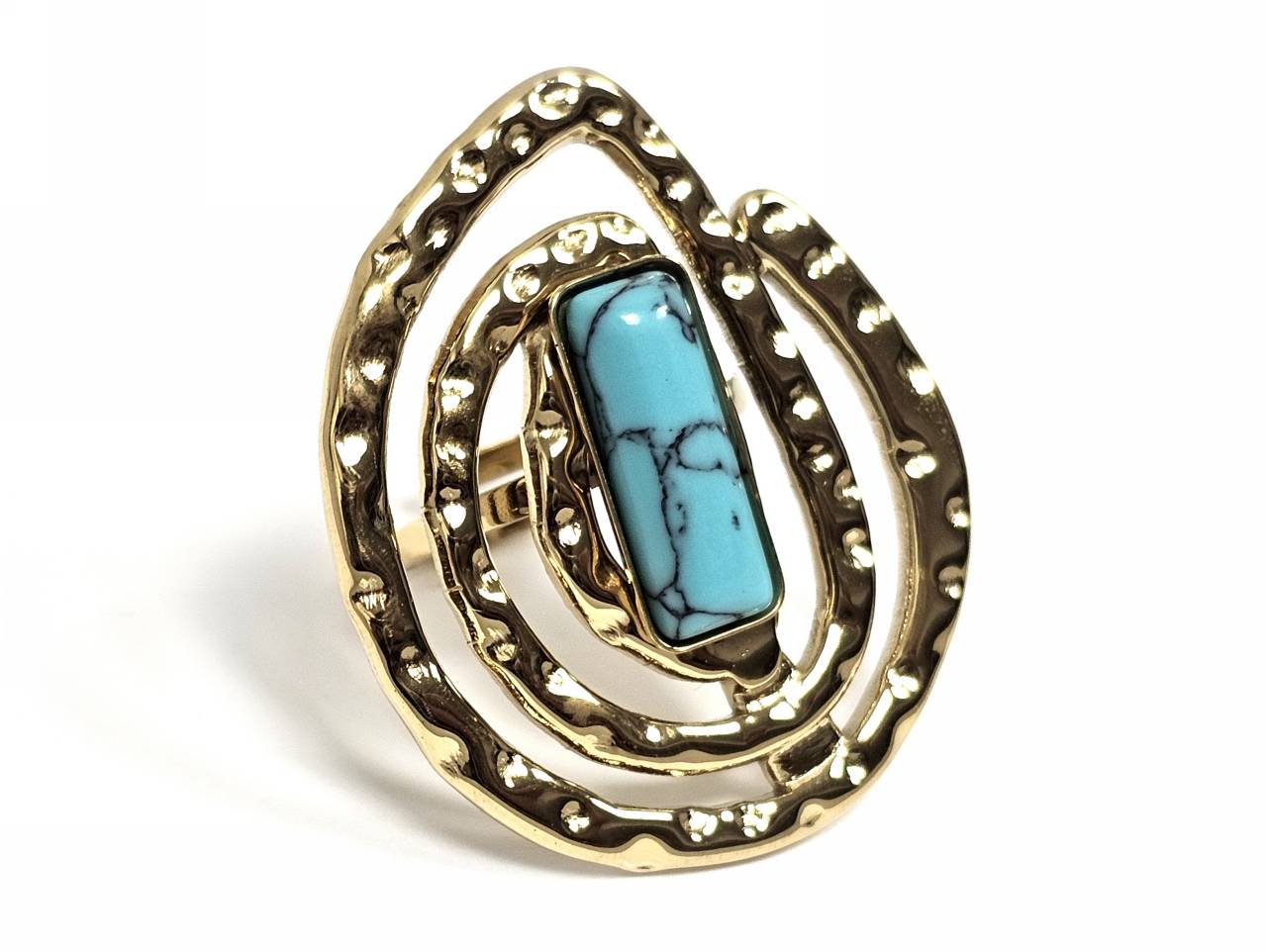 Δαχτυλίδι Πέτρα ατσάλι 316L, με τυρκουάζ σε χρώμα Χρυσαφί