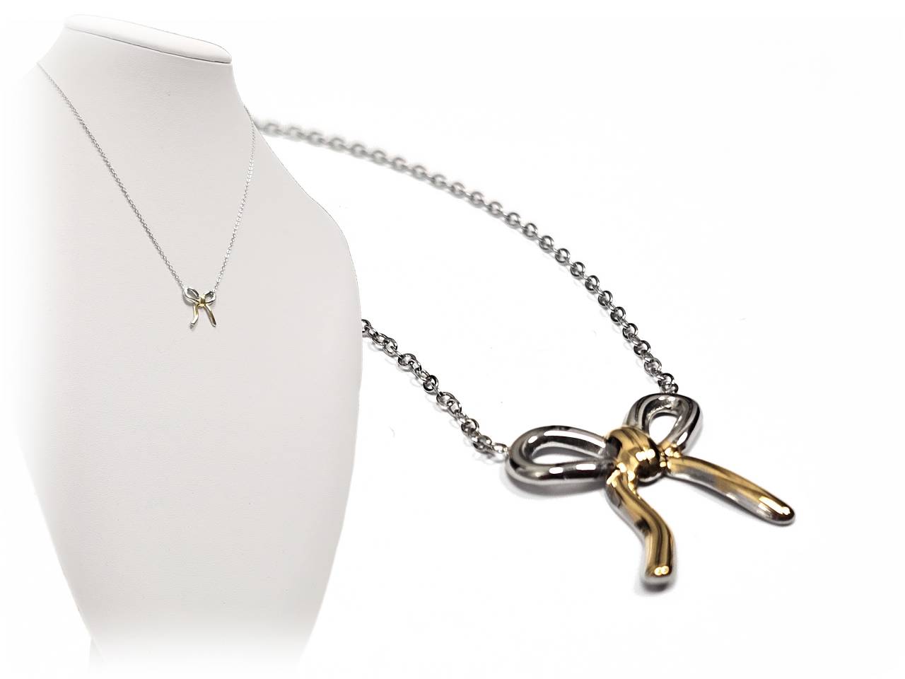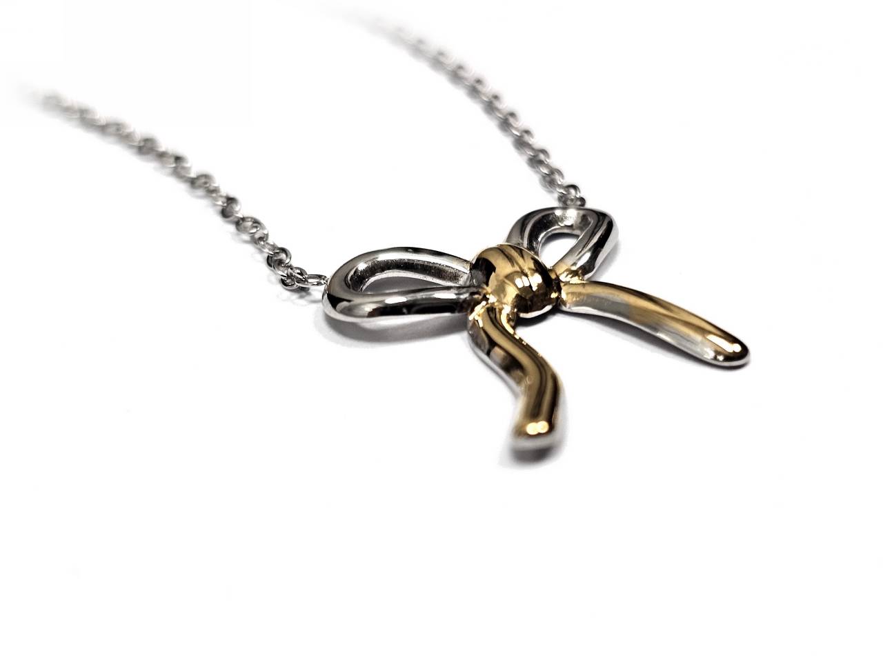 Κολιέ Ατσάλι 316L, αλυσίδα με φιογκάκι σε χρώμα Ασημί και χρώμα Χρυσαφί