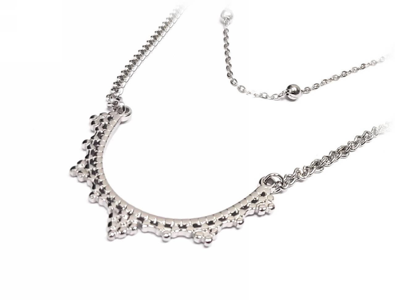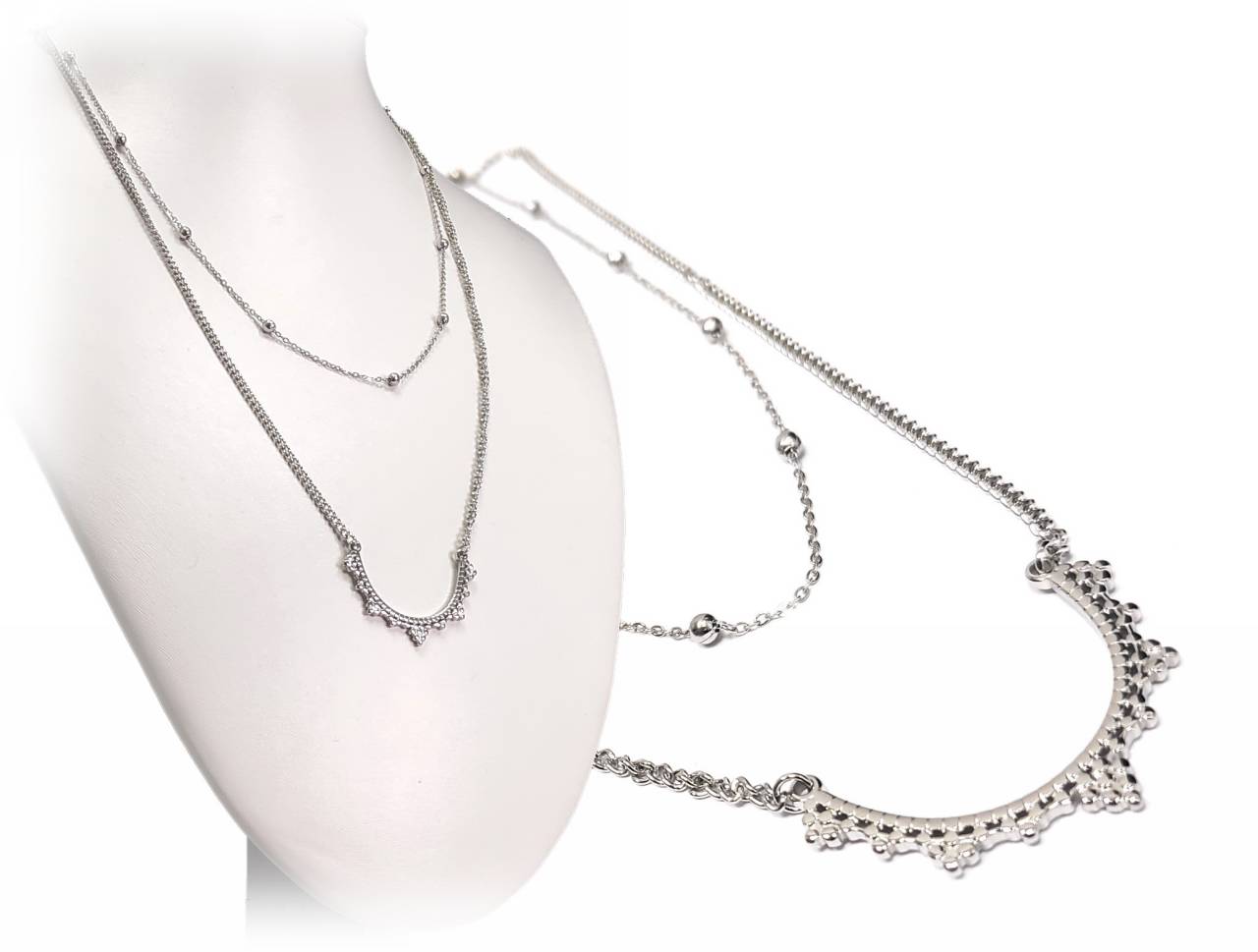 Κολιέ Ατσάλι 316L, διπλή αλυσίδα σε χρώμα Ασημί, Μήκος 45cm