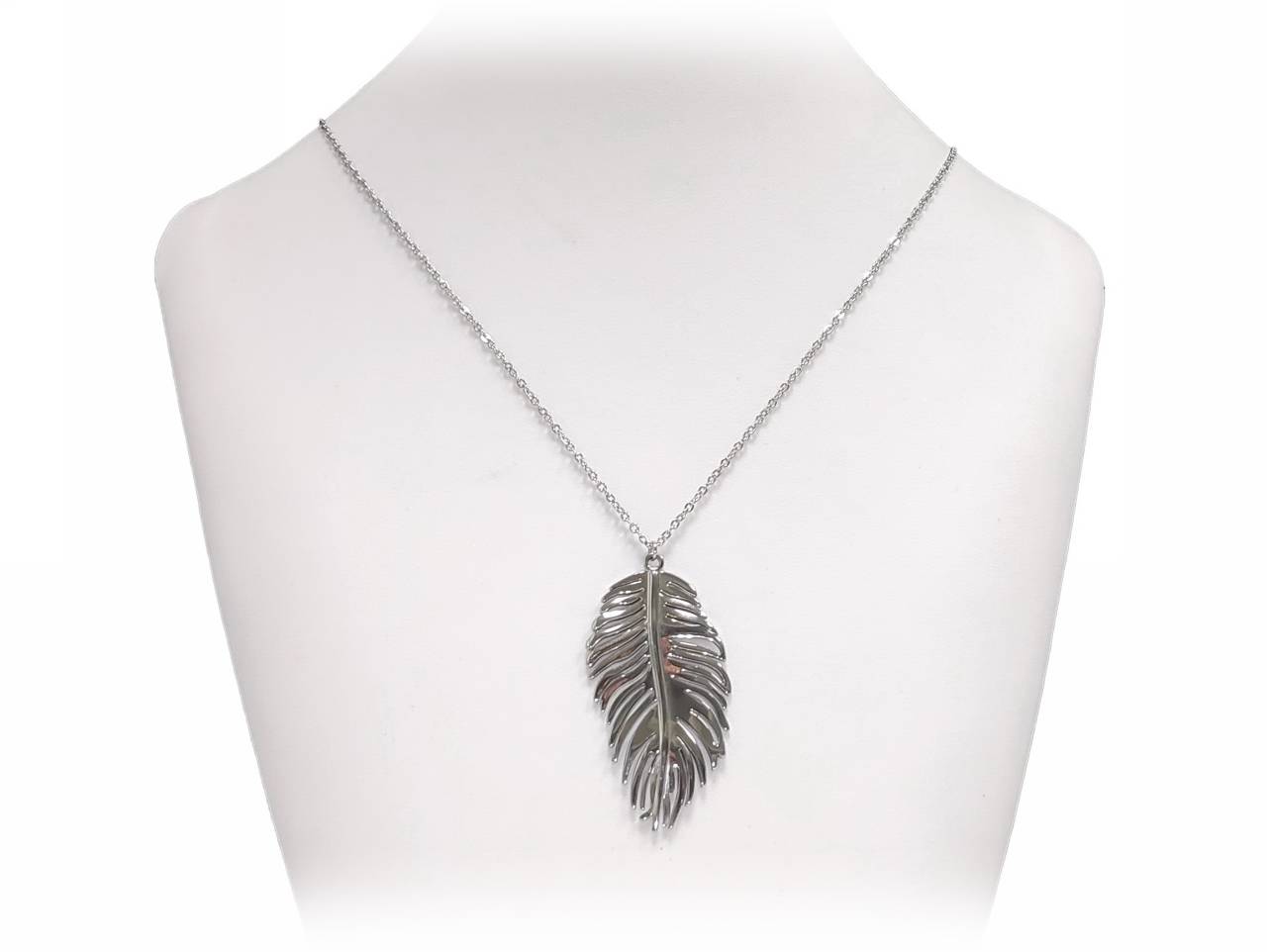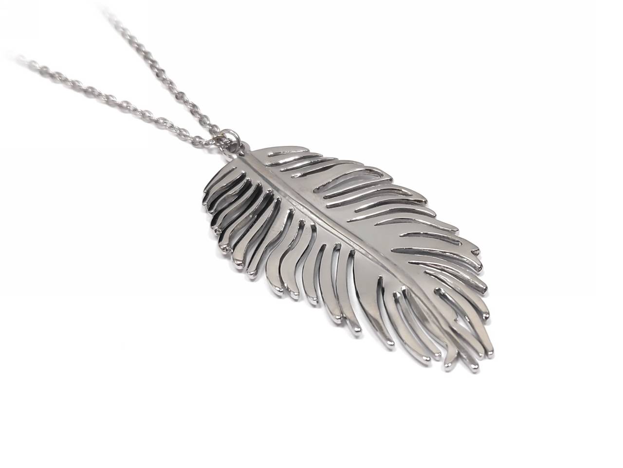 Κολιέ Ατσάλι 316L, μακριά αλυσίδα με φύλλο σε χρώμα Ασημί, Μήκος 80cm