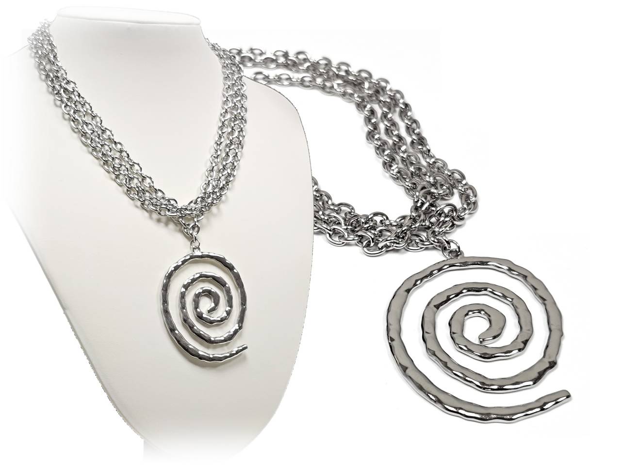 Κολιέ Ατσάλι 316L, αλυσίδα τριπλή με σπείρα σε χρώμα Ασημί