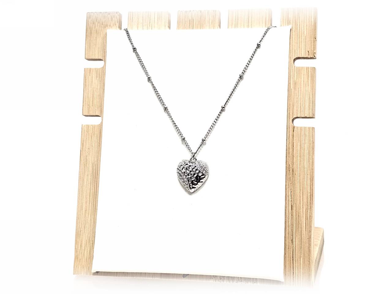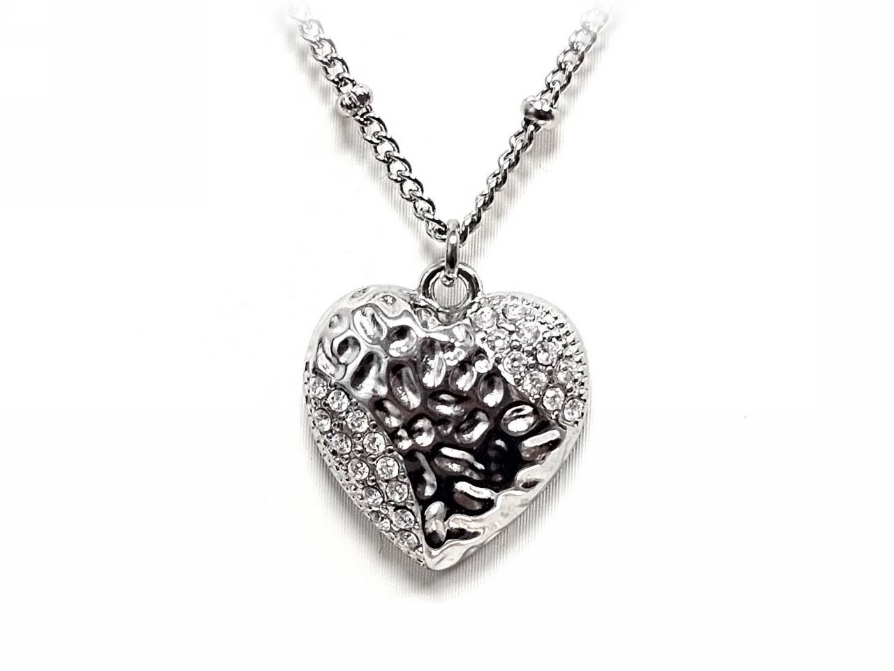 Κολιέ Ατσάλι 316L, αλυδίδα καρδιά με στρας σε χρώμα Ασημί
