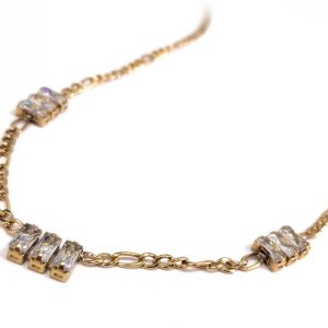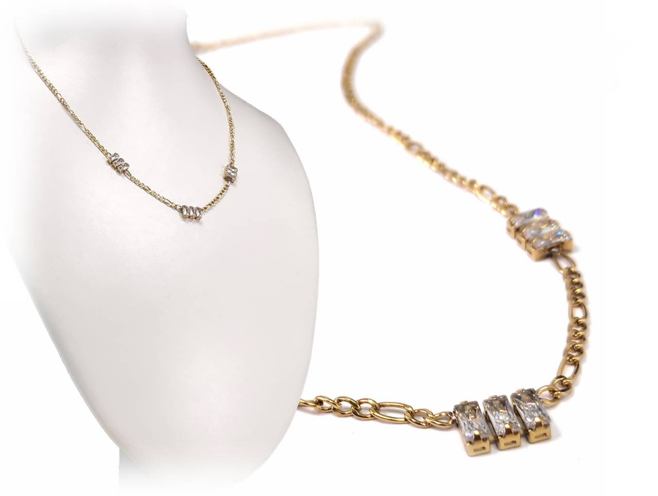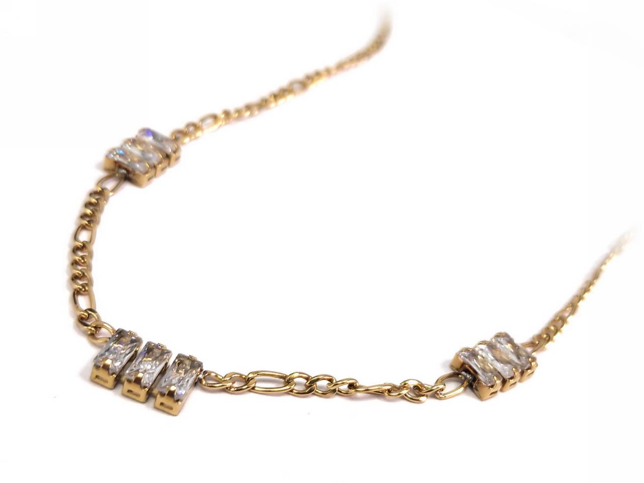 Κολιέ Ατσάλι 316L, αλυσίδα με κρυσταλλάκια σε χρώμα Χρυσαφί, Μήκος 40cm