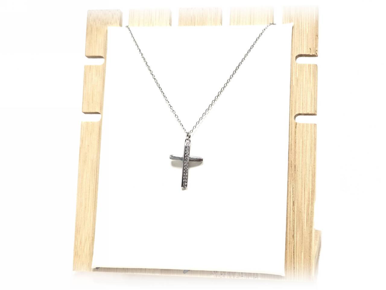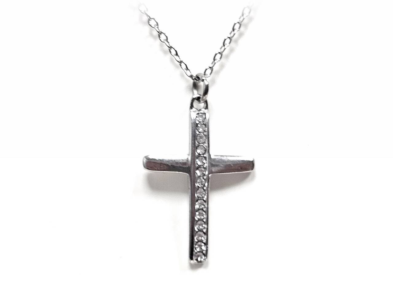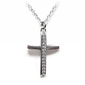 Κολιέ Ατσάλι 316L , αλυσίδα με σταυρό και στρας σε χρώμα Ασημί