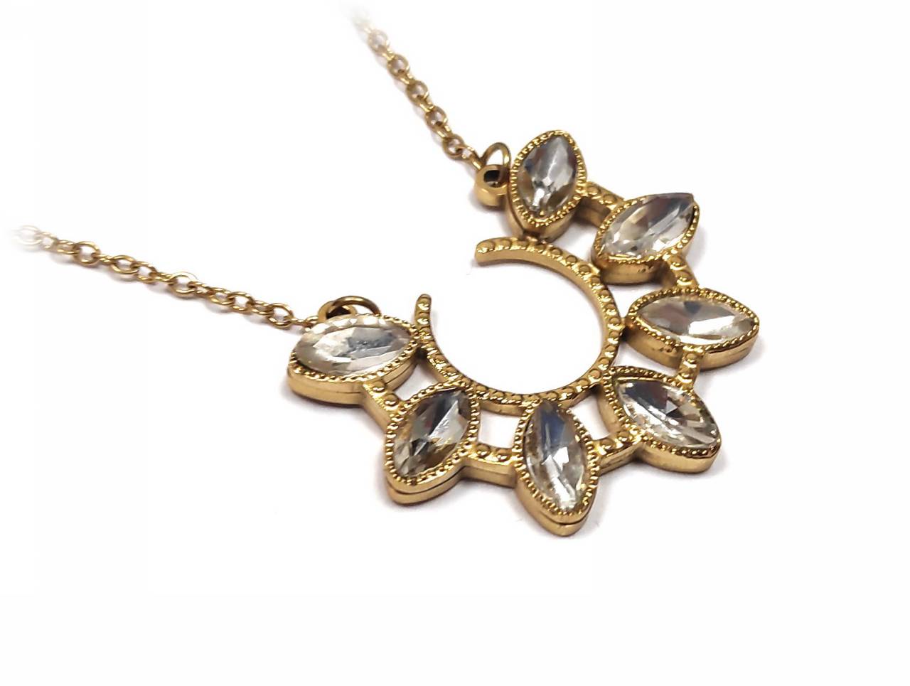Κολιέ Ατσάλι 316L, με αλυσίδα και στρας σε χρώμα Χρυσαφί