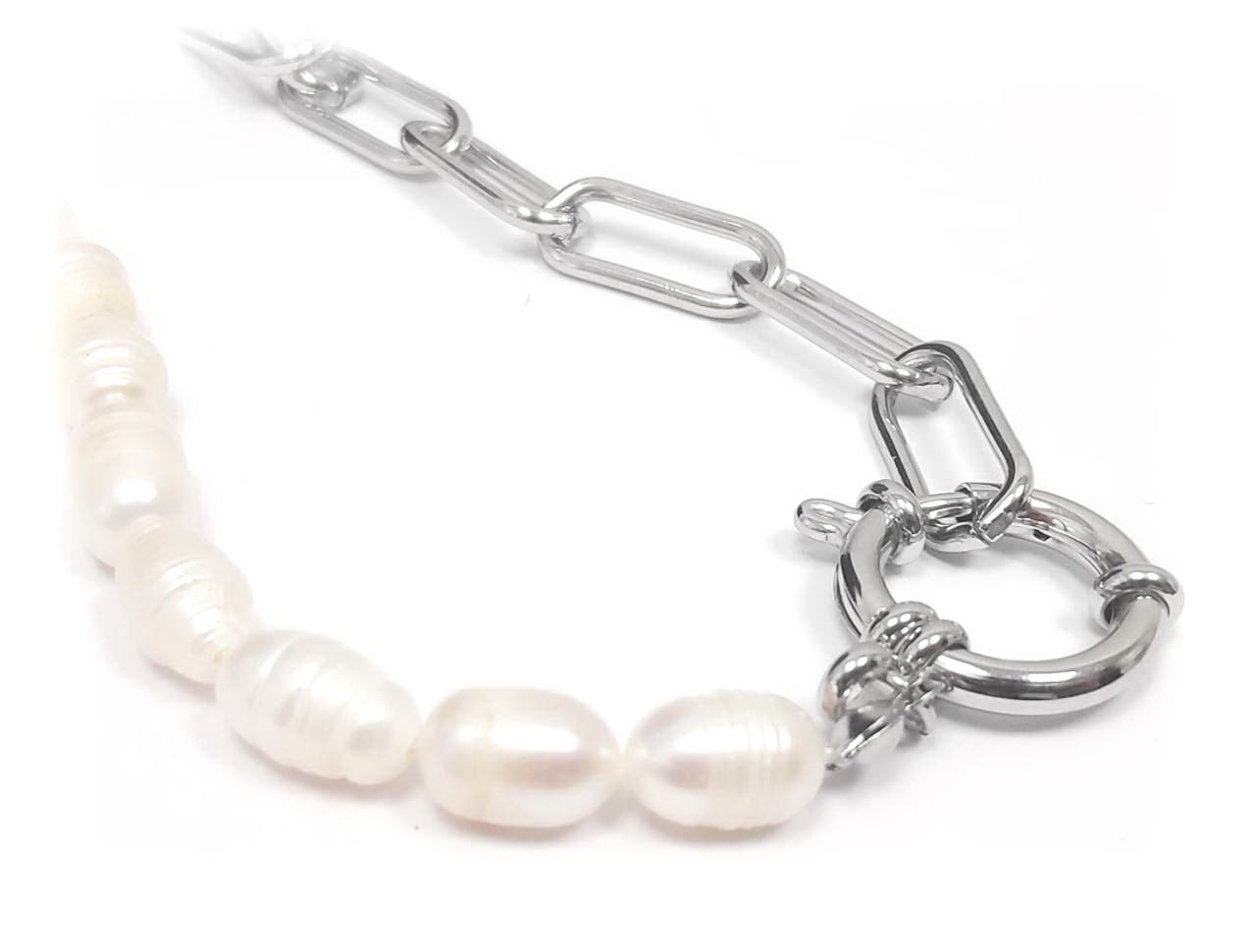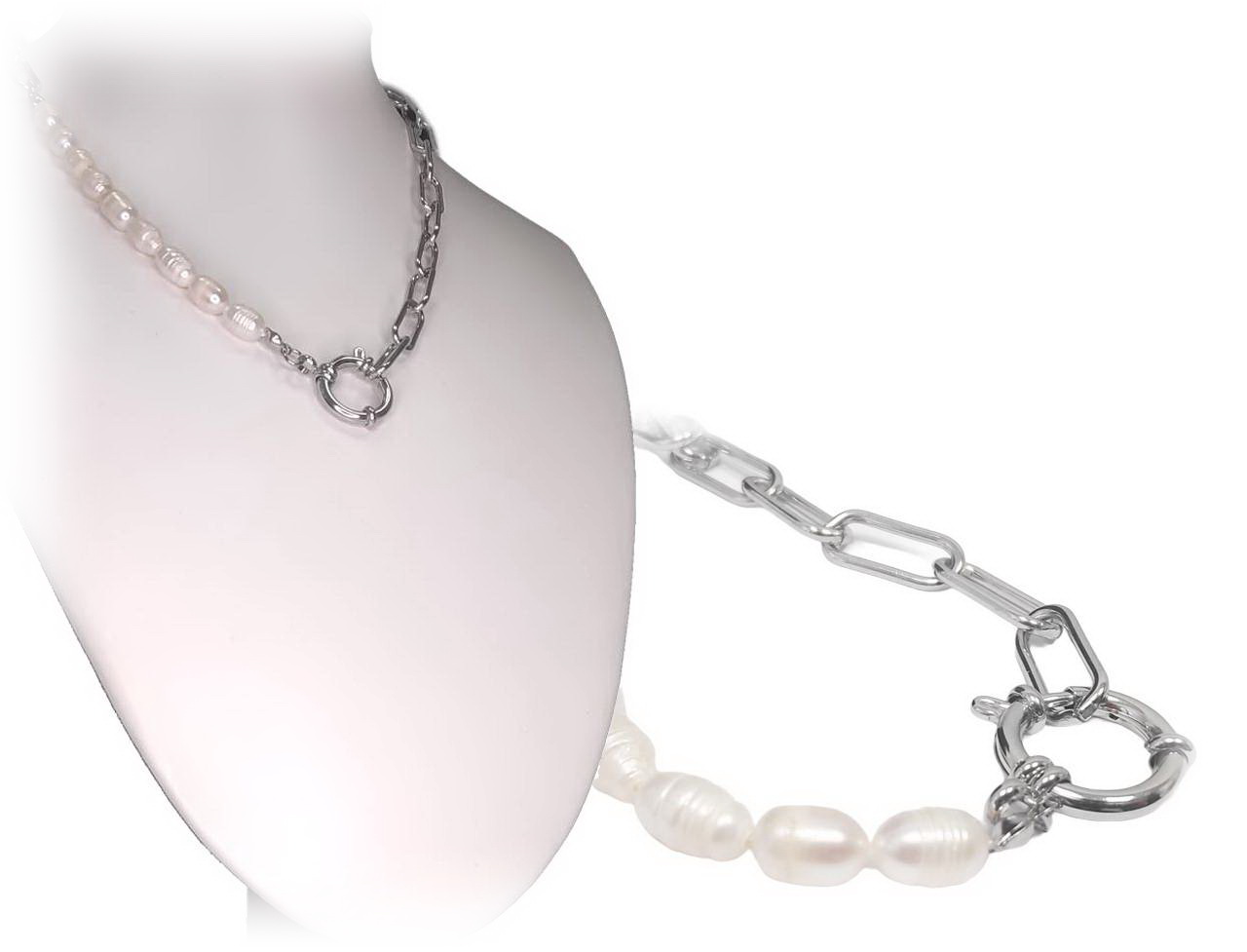 Κολιέ Ατσάλι 316L, αλυσίδα με μαργαριτάρι σε χρώμα Ασημί, Μήκος 40cm