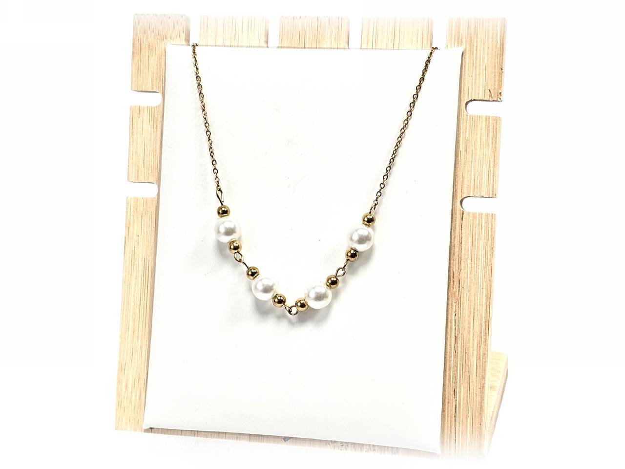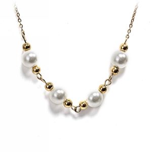 Κολιέ Ατσάλι 316L, αλυσίδα με πέρλα σε χρώμα Χρυσαφί