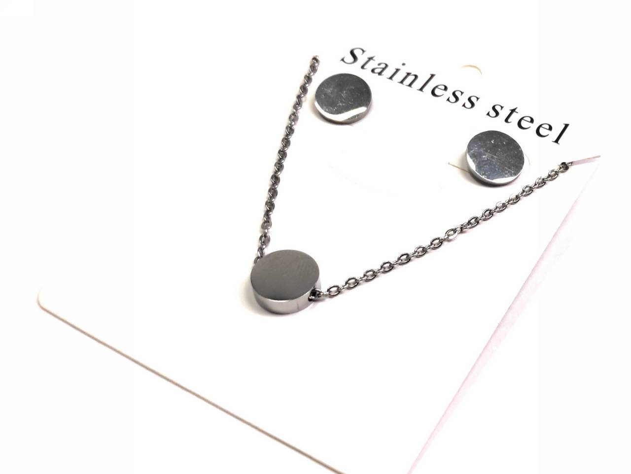 Κολιέ Ατσάλι 304, αλυσίδα σετ με σκουλαρίκια σε χρώμα Ασημί
