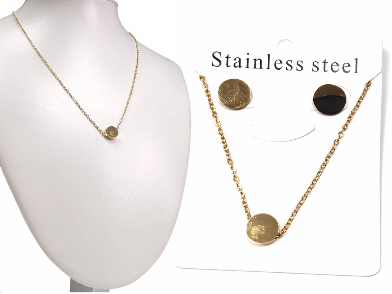 Κολιέ Ατσάλι 304, αλυσίδα σετ με σκουλαρίκια σε χρώμα Χρυσαφί