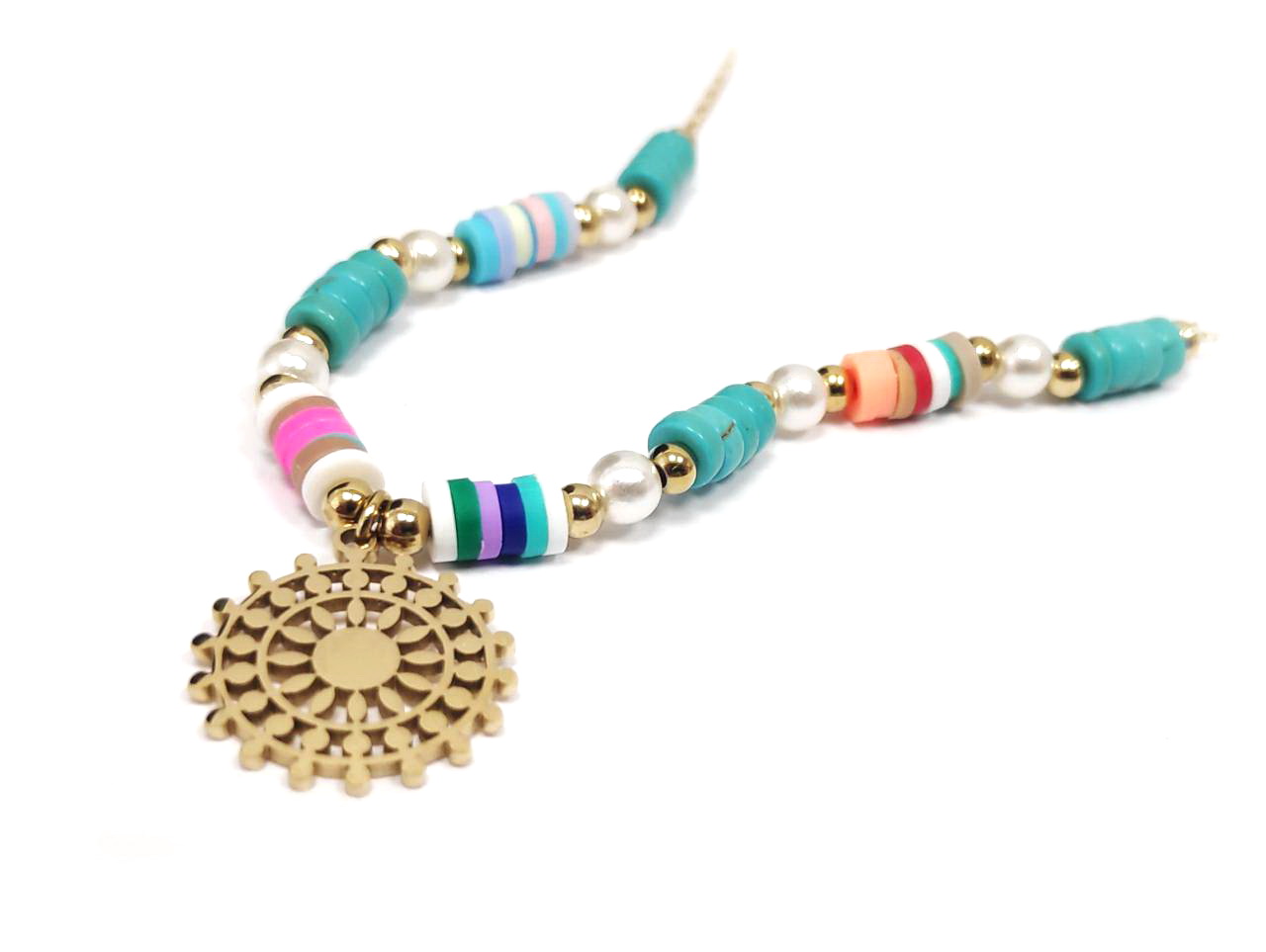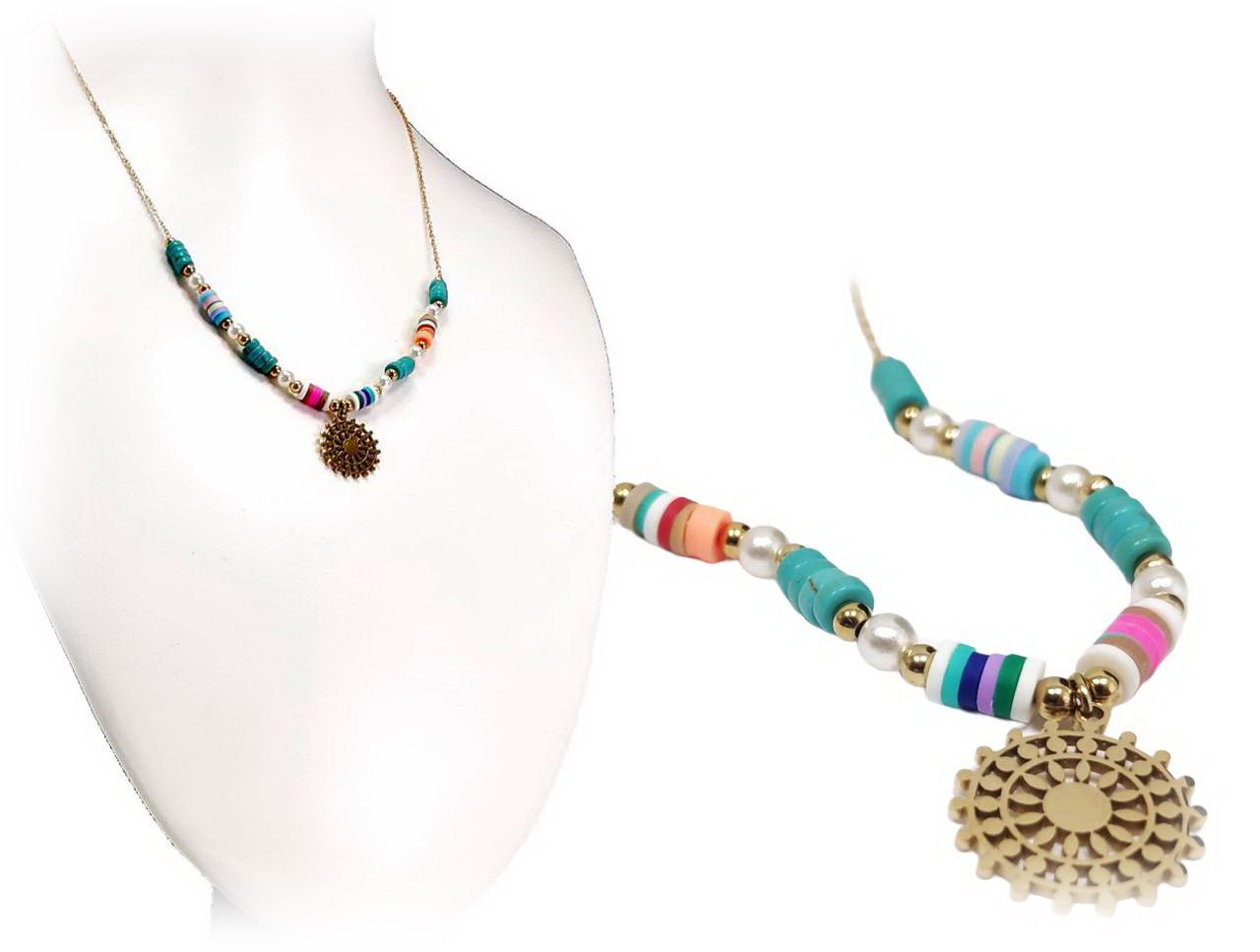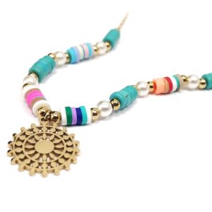 Κολιέ Πέτρα 316L, αλυσίδα και πολύχρωμες χάντρες σε χρώμα Χρυσαφί, Μήκος 40cm