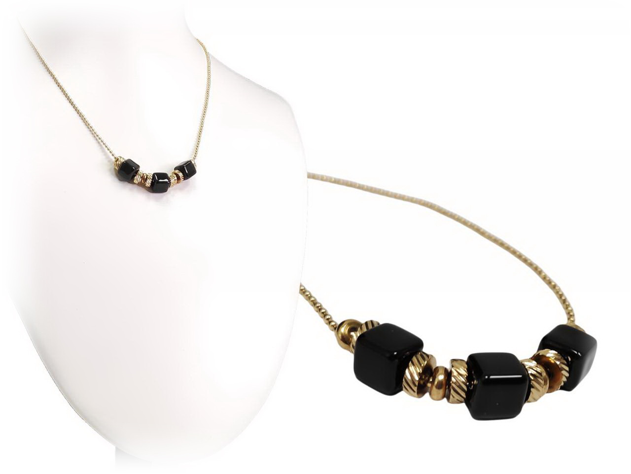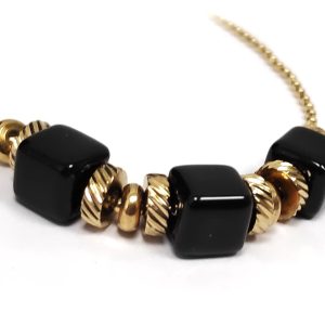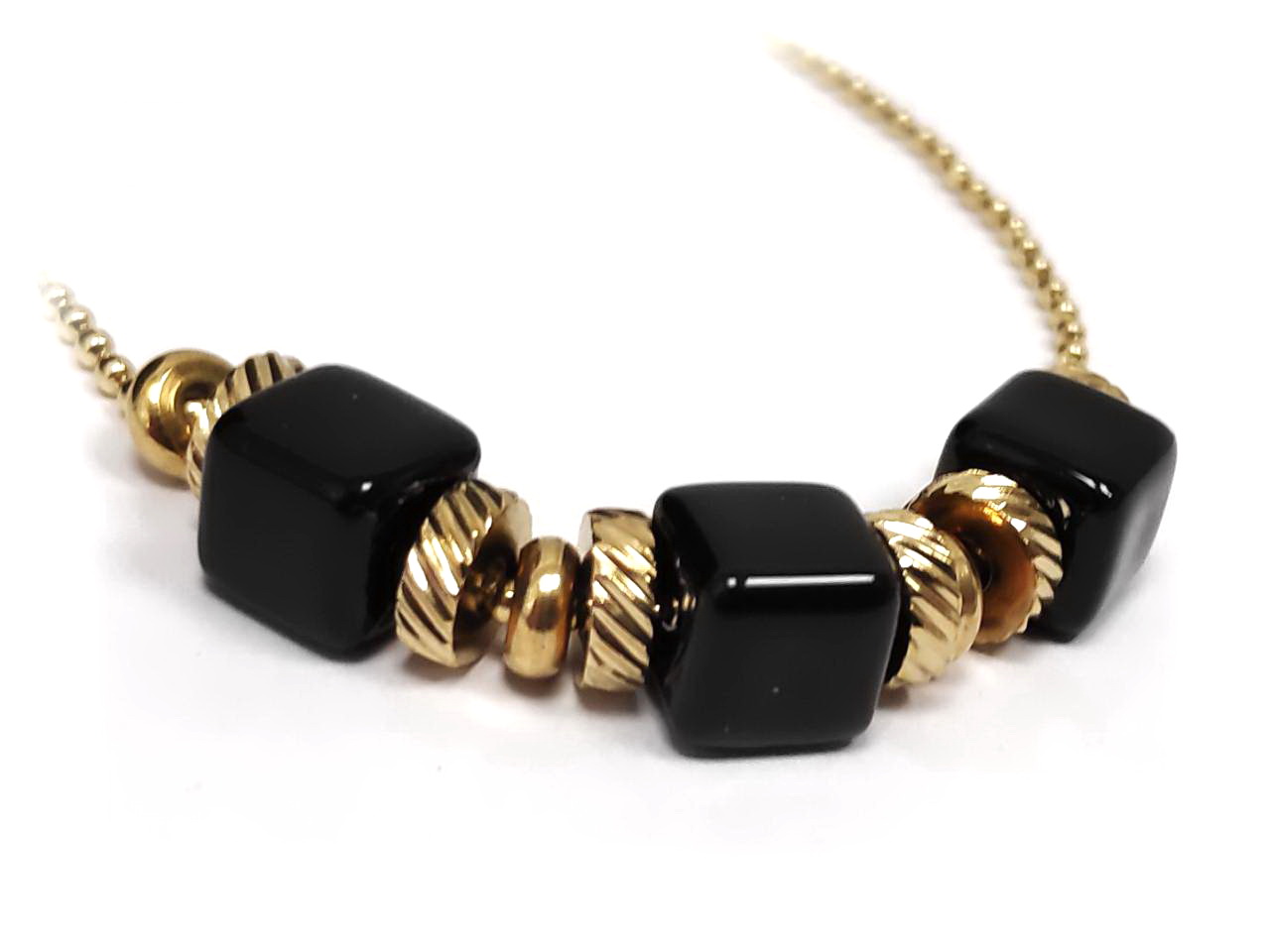 Κολιέ Πέτρα 316L,αλυσίδα με μαύρο αχάτη σε χρώμα Χρυσαφί, Μήκος 40cm