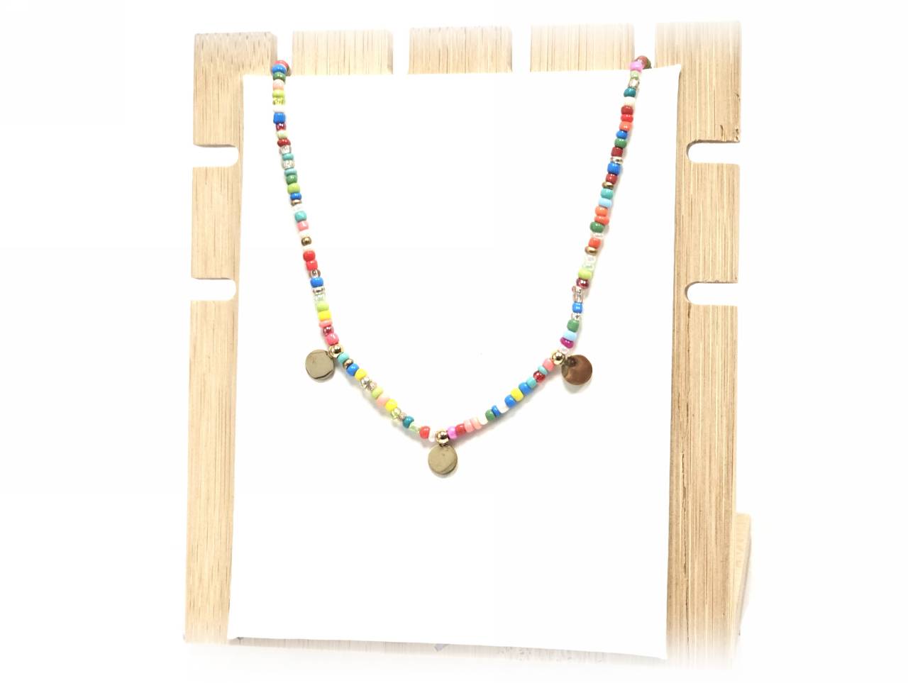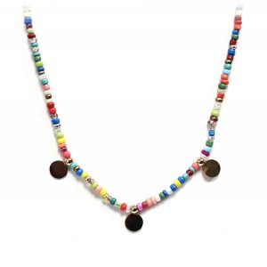 Κολιέ Πέτρα ατσάλι 316L, αλυσίδα με διάφορες πέτρες σε χρώμα Χρυσαφί