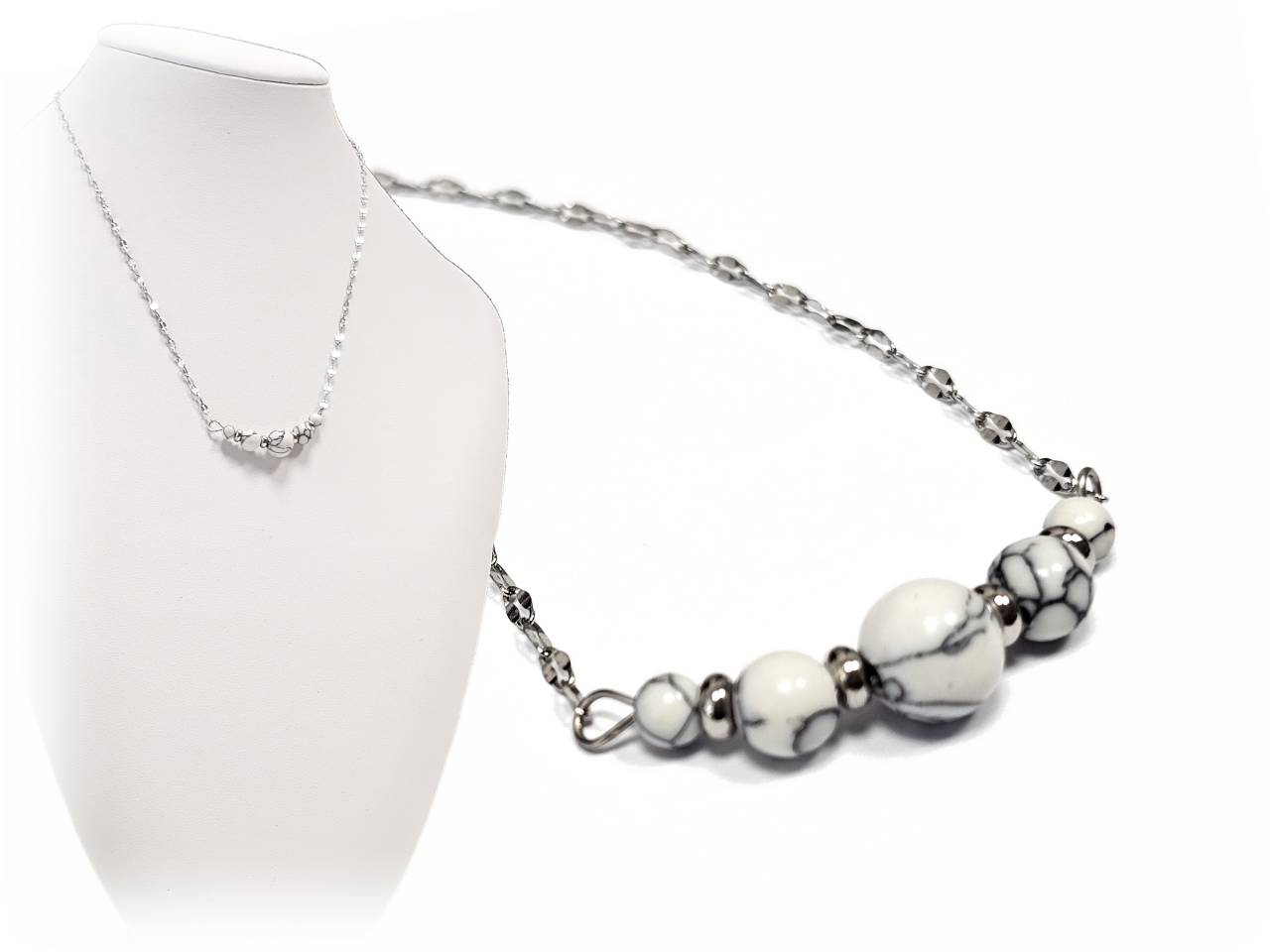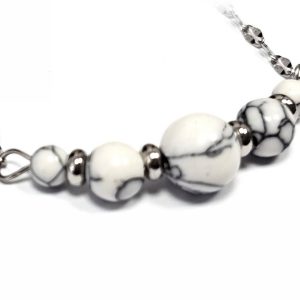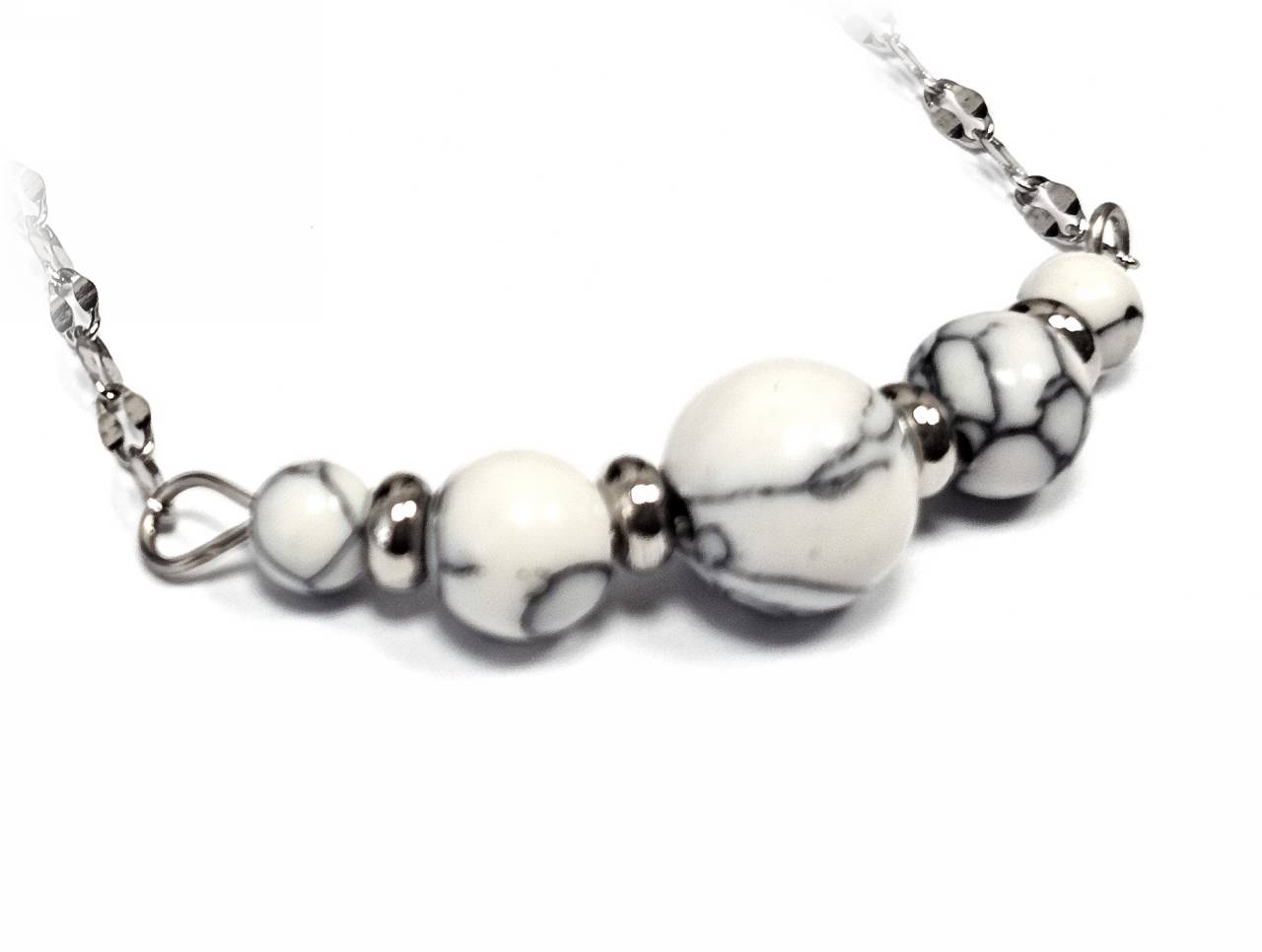 Κολιέ Πέτρα ημιπολύτιμη 4-6-8-6-4mm, ατσάλι σε χρώμα Ασημί