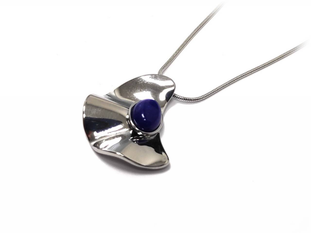 Κολιέ Πέτρα 316L, αλυσίδα με Lapis σε χρώμα Ασημί