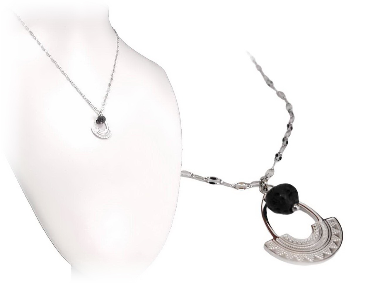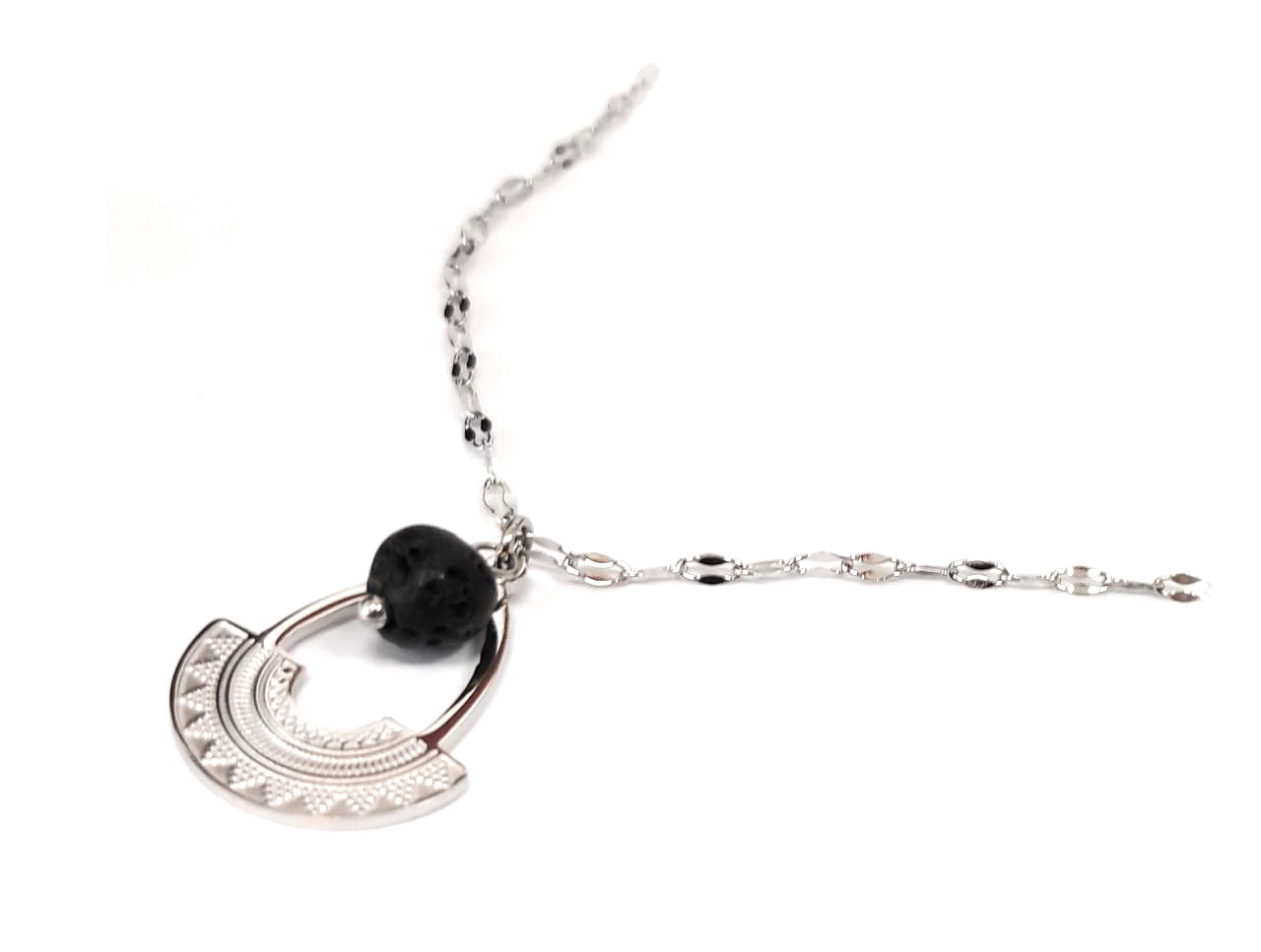 Κολιέ Πέτρα 316L, αλυσίδα και λάβα σε χρώμα Ασημί, Μήκος 40cm