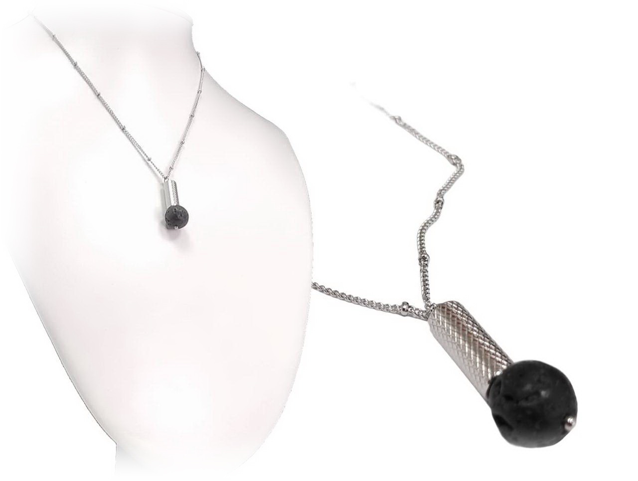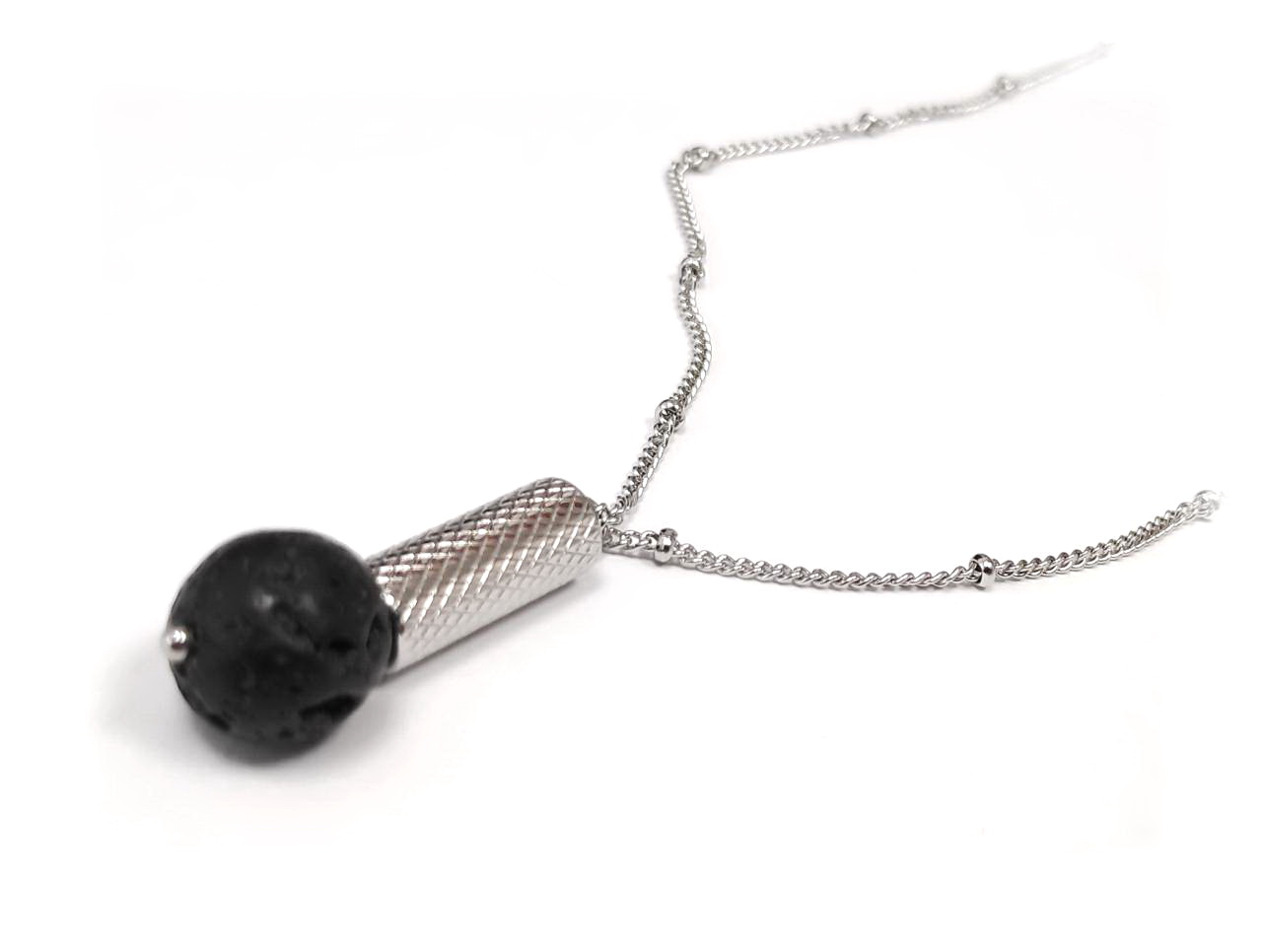 Κολιέ Πέτρα 316L, αλυσίδα και λάβα σε χρώμα Ασημί, Μήκος 40cm