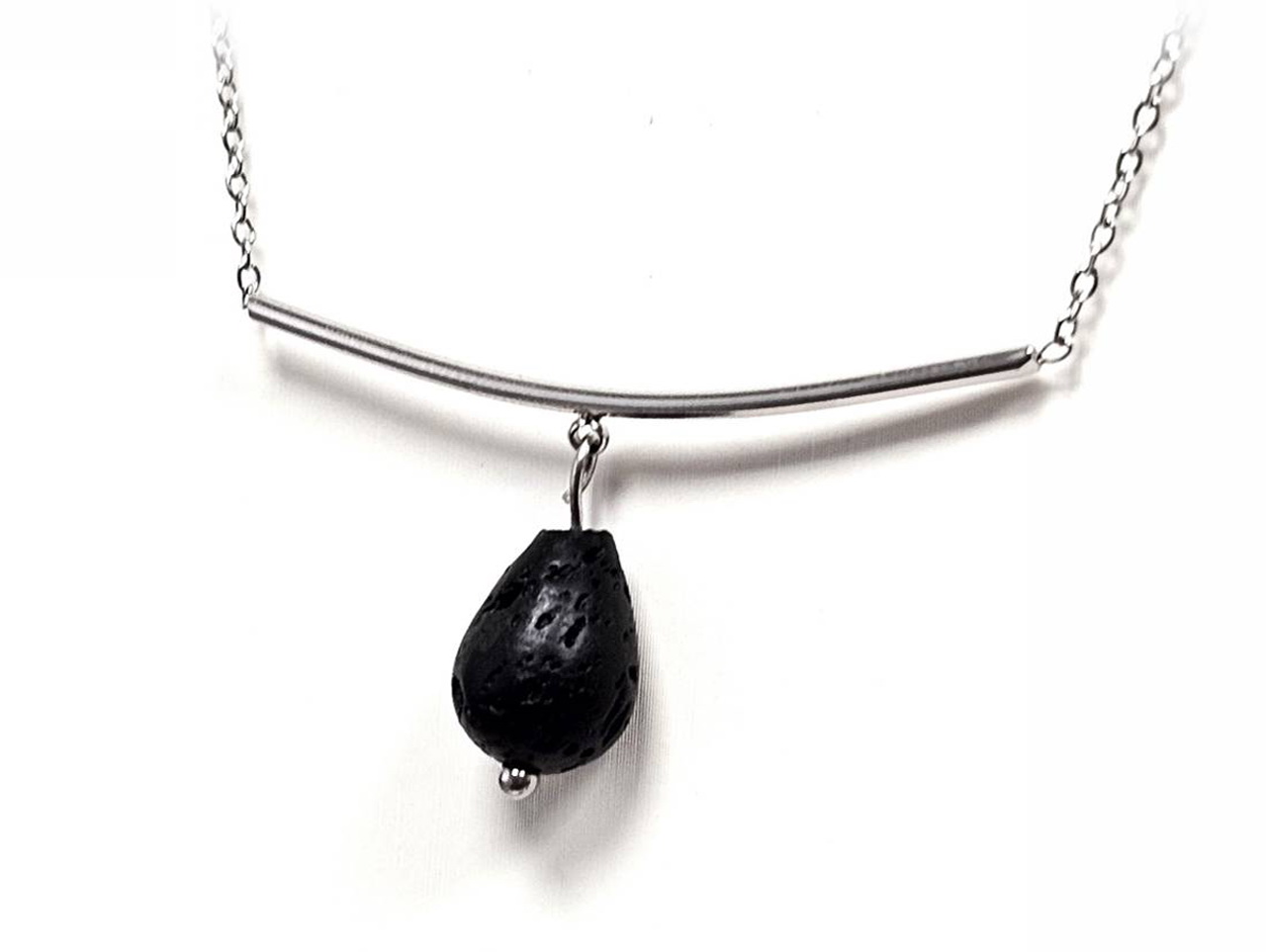 Κολιέ Πέτρα 316L, αλυσίδα με λάβα σε χρώμα Ασημί