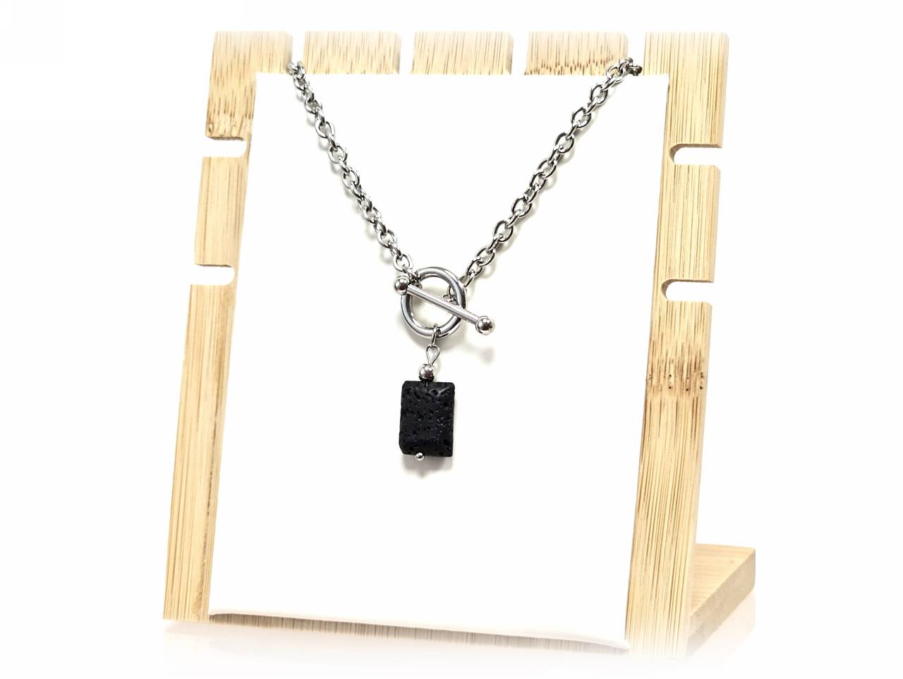 Κολιέ Πέτρα 316L, αλυσίδα με λάβα σε χρώμα Ασημί