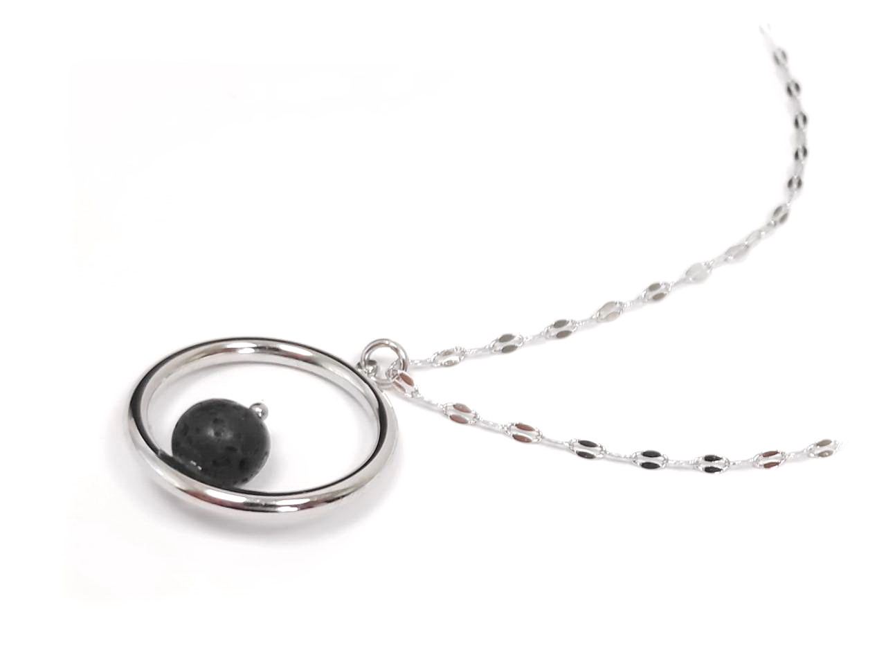 Κολιέ Πέτρα 316L, αλυσίδα με λάβα σε χρώμα Ασημί, Μήκος 40cm
