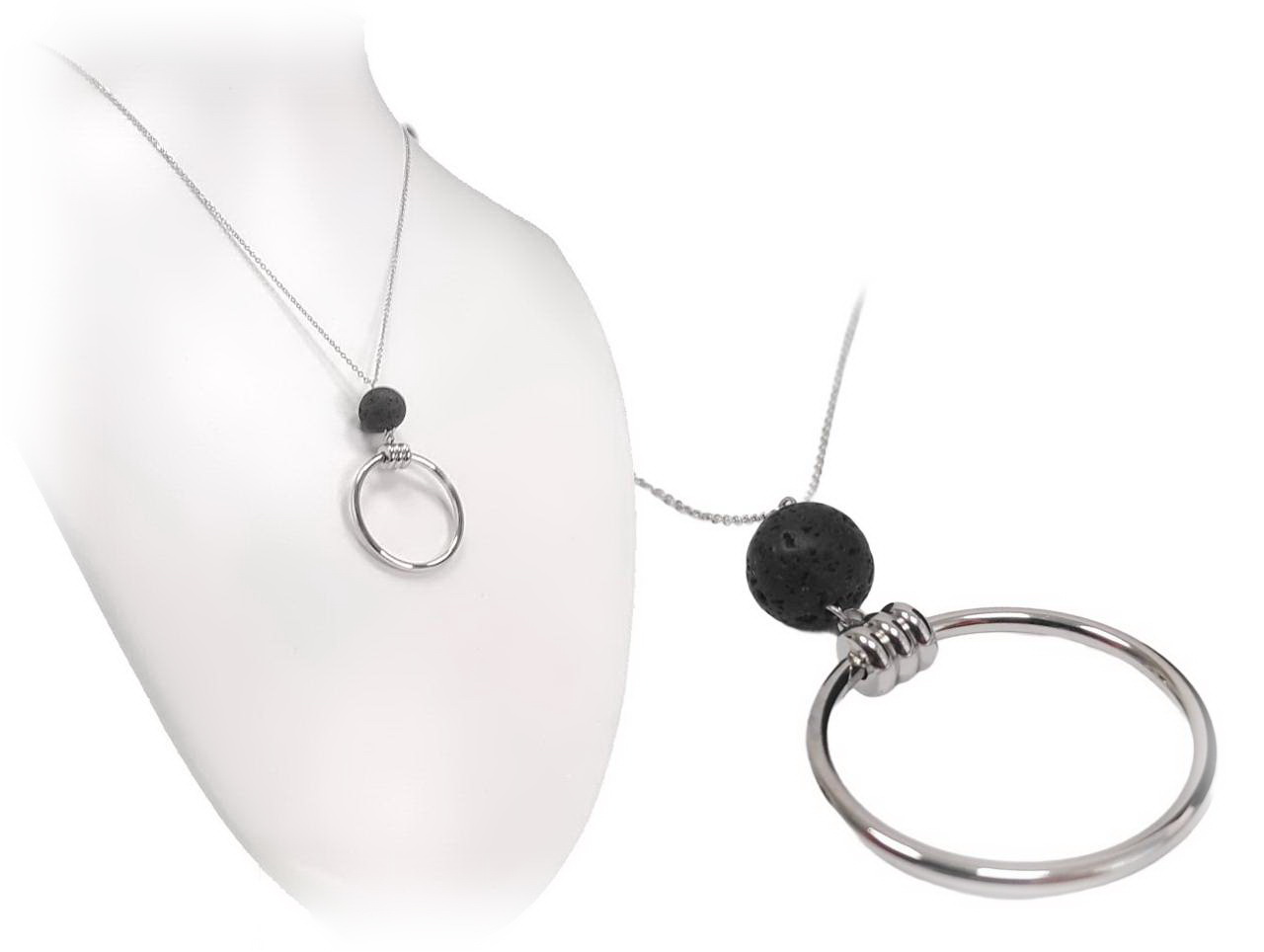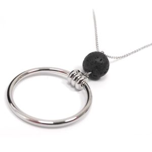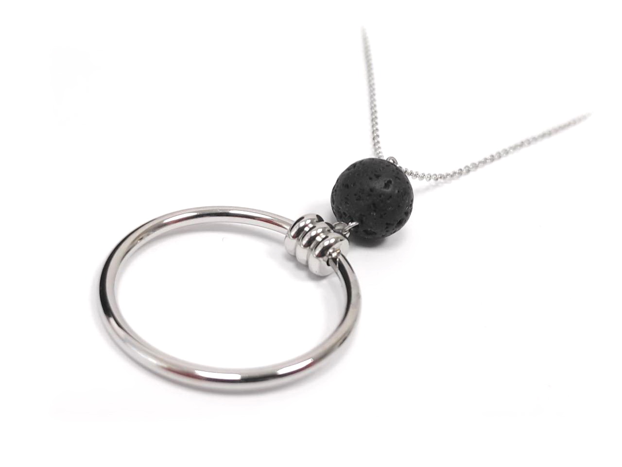 Κολιέ Πέτρα 316L, αλυσίδα με λάβα σε χρώμα Ασημί, Μήκος 40cm