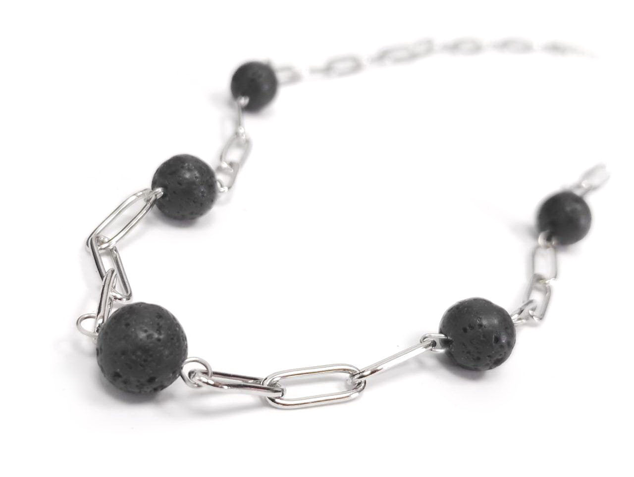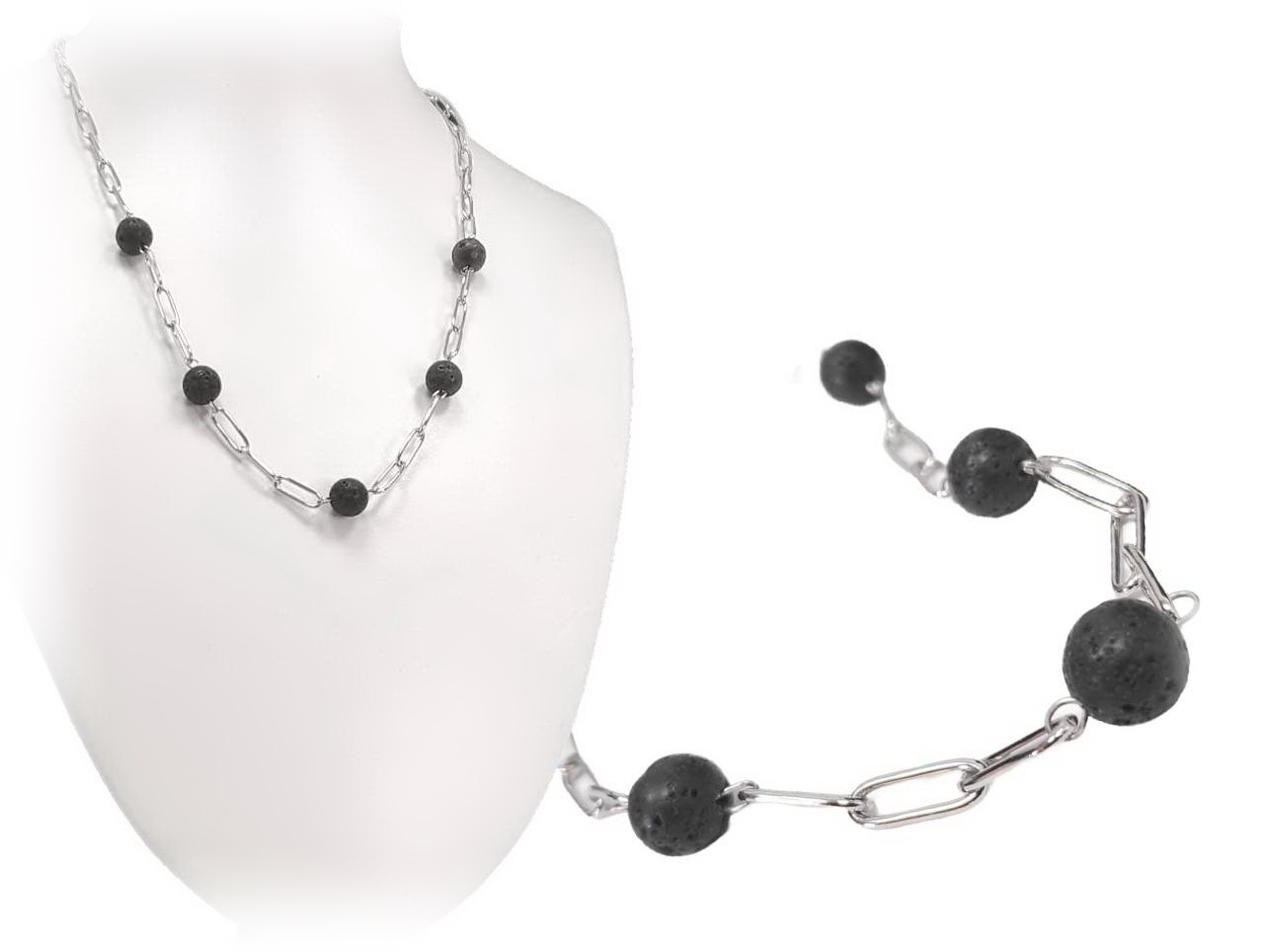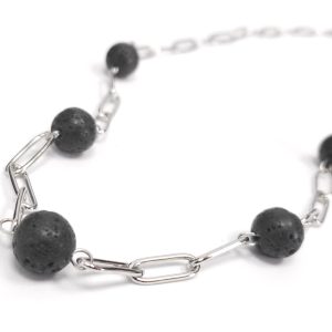 Κολιέ Πέτρα 316L, αλυσίδα με λάβα σε χρώμα Ασημί, Μήκος 40cm