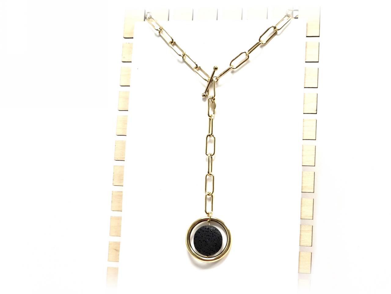 Κολιέ Πέτρα 316L, αλυσίδα με λάβα σε χρώμα Χρυσαφί