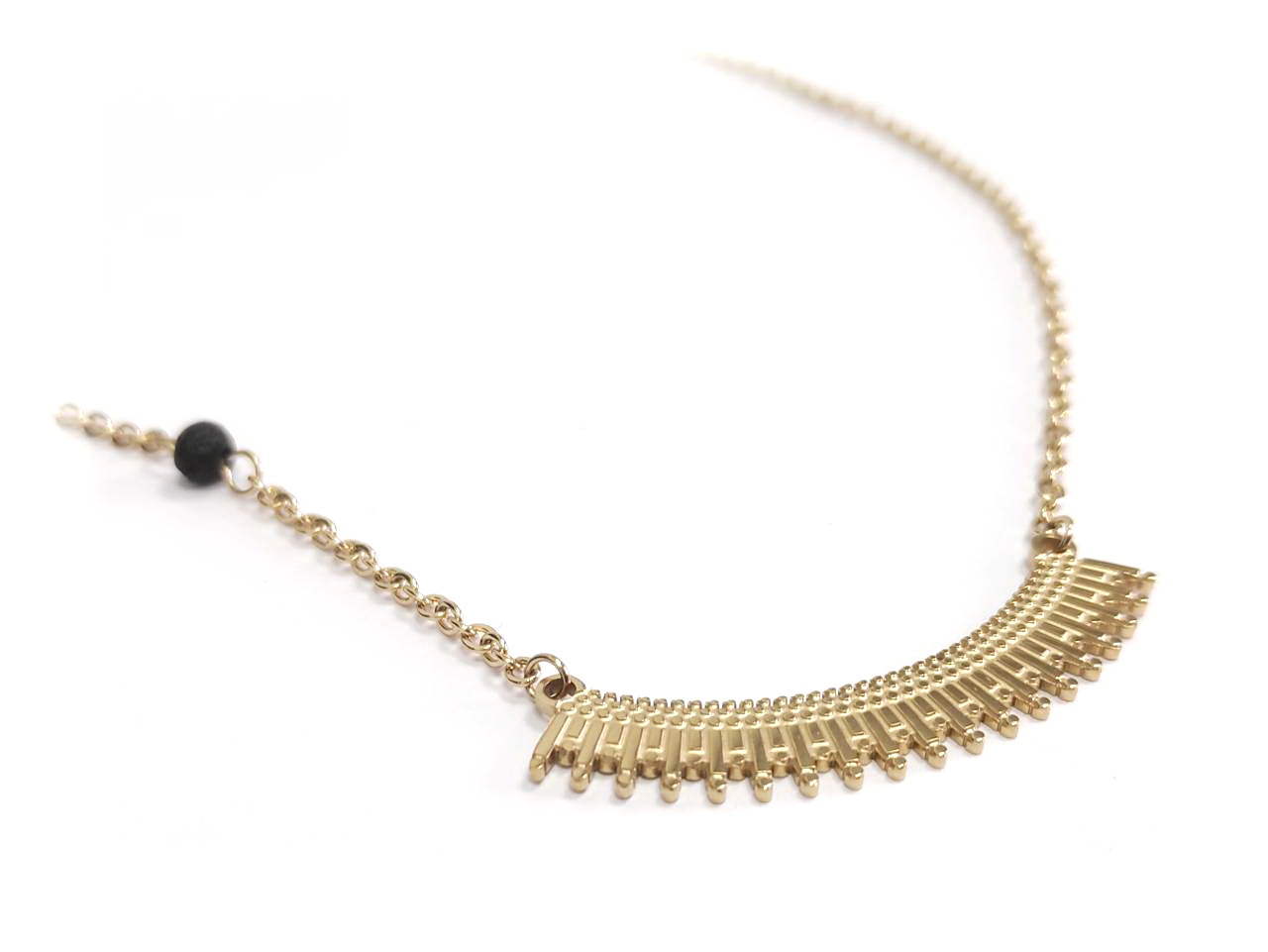 Κολιέ Πέτρα 316L, αλυσίδα με λάβα σε χρώμα Χρυσαφί, Μήκος 40cm