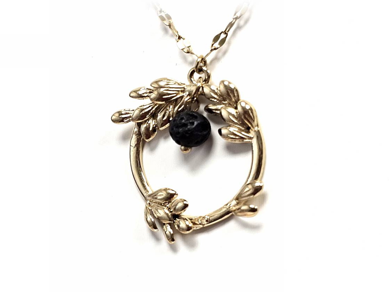 Κολιέ Πέτρα 316L, αλυσίδα με λάβα σε χρώμα Χρυσαφί