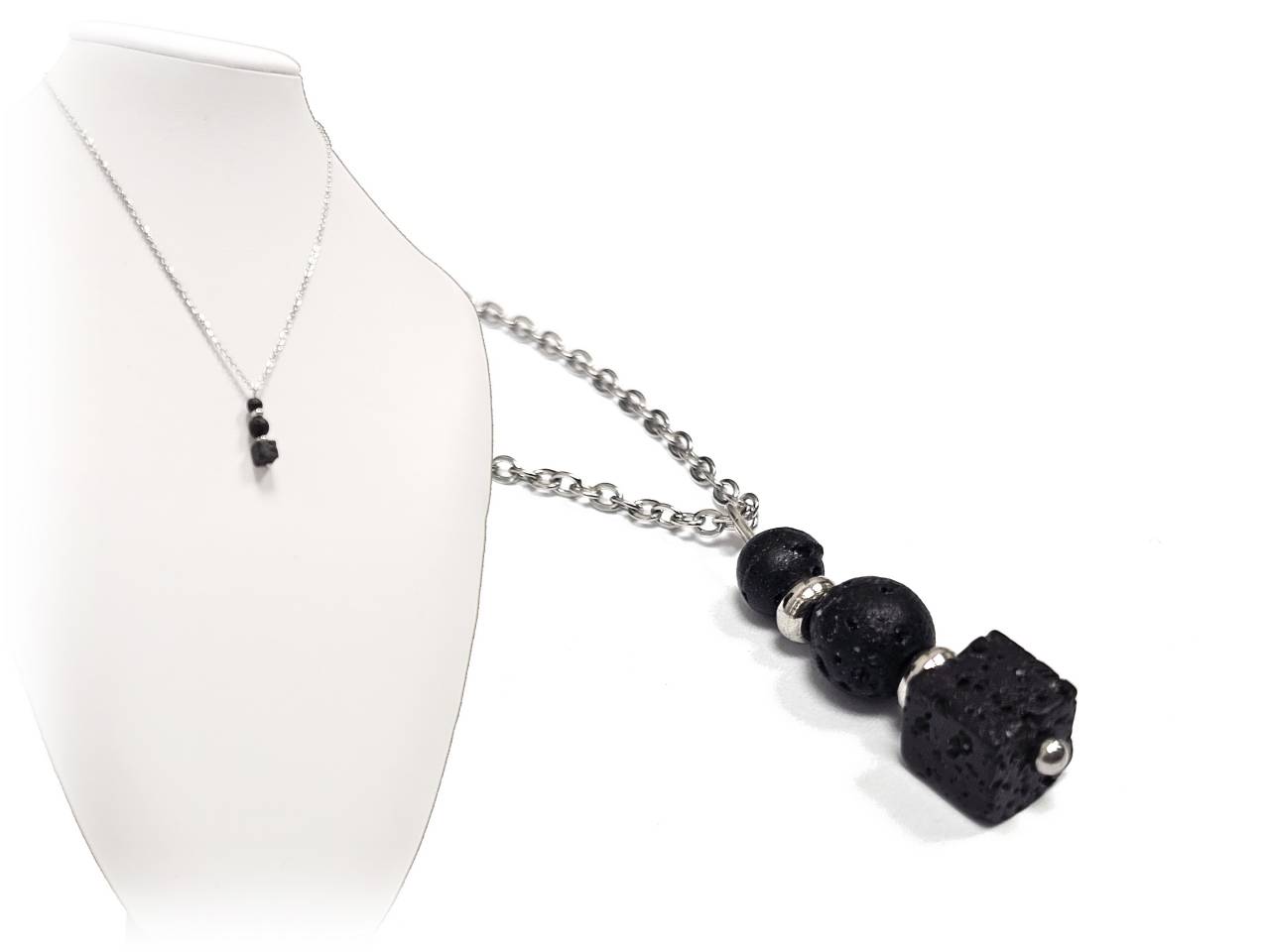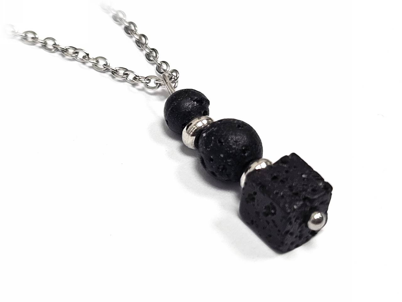 Κολιέ Πέτρα λάβα, ατσάλι σε χρ...
