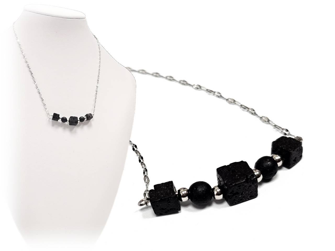 Κολιέ Πέτρα λάβα, ατσάλι σε χρ...