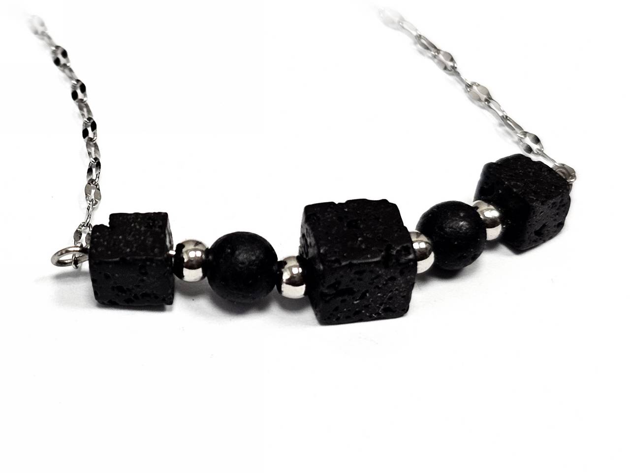 Κολιέ Πέτρα λάβα, ατσάλι σε χρώμα Ασημί