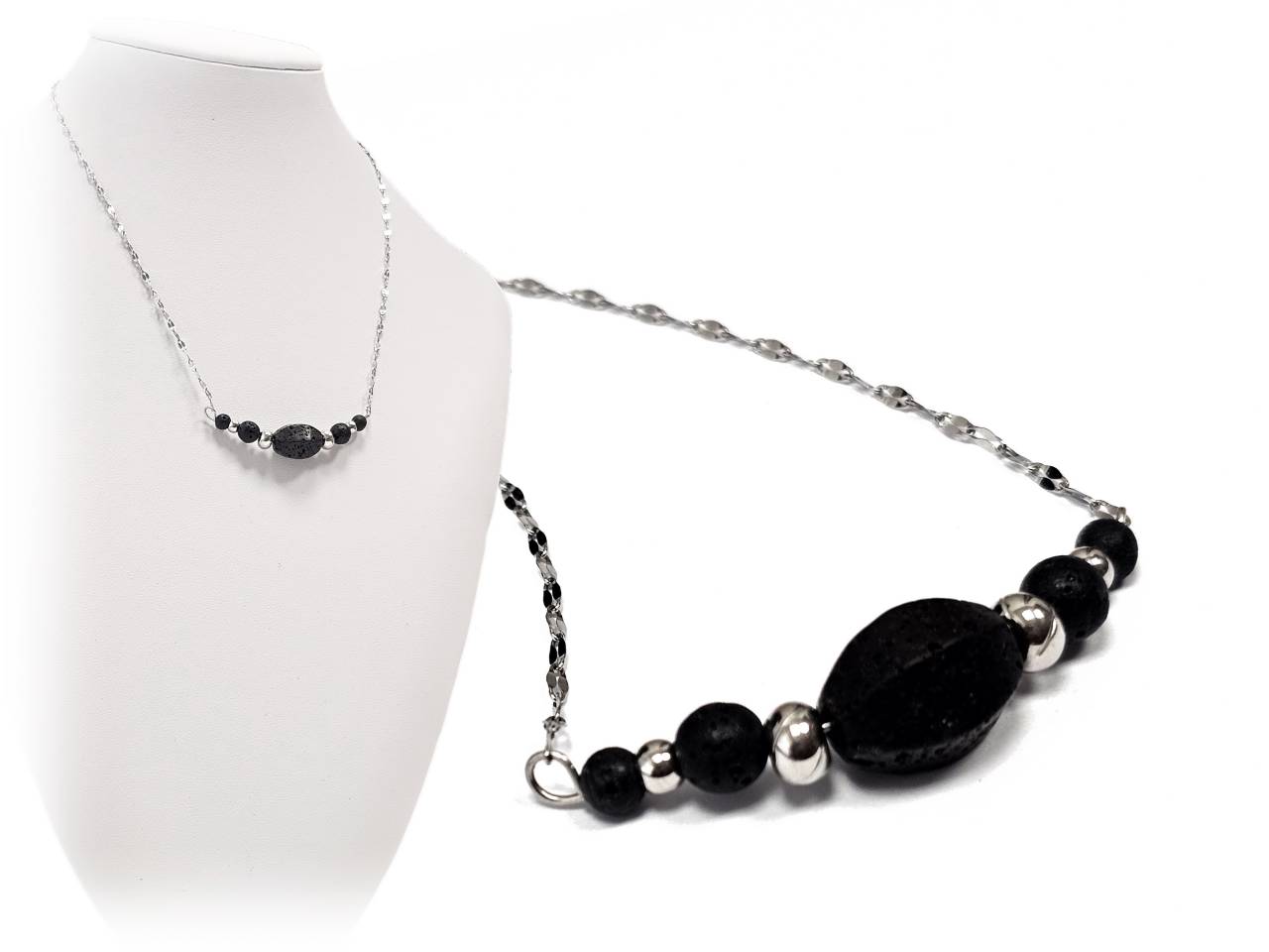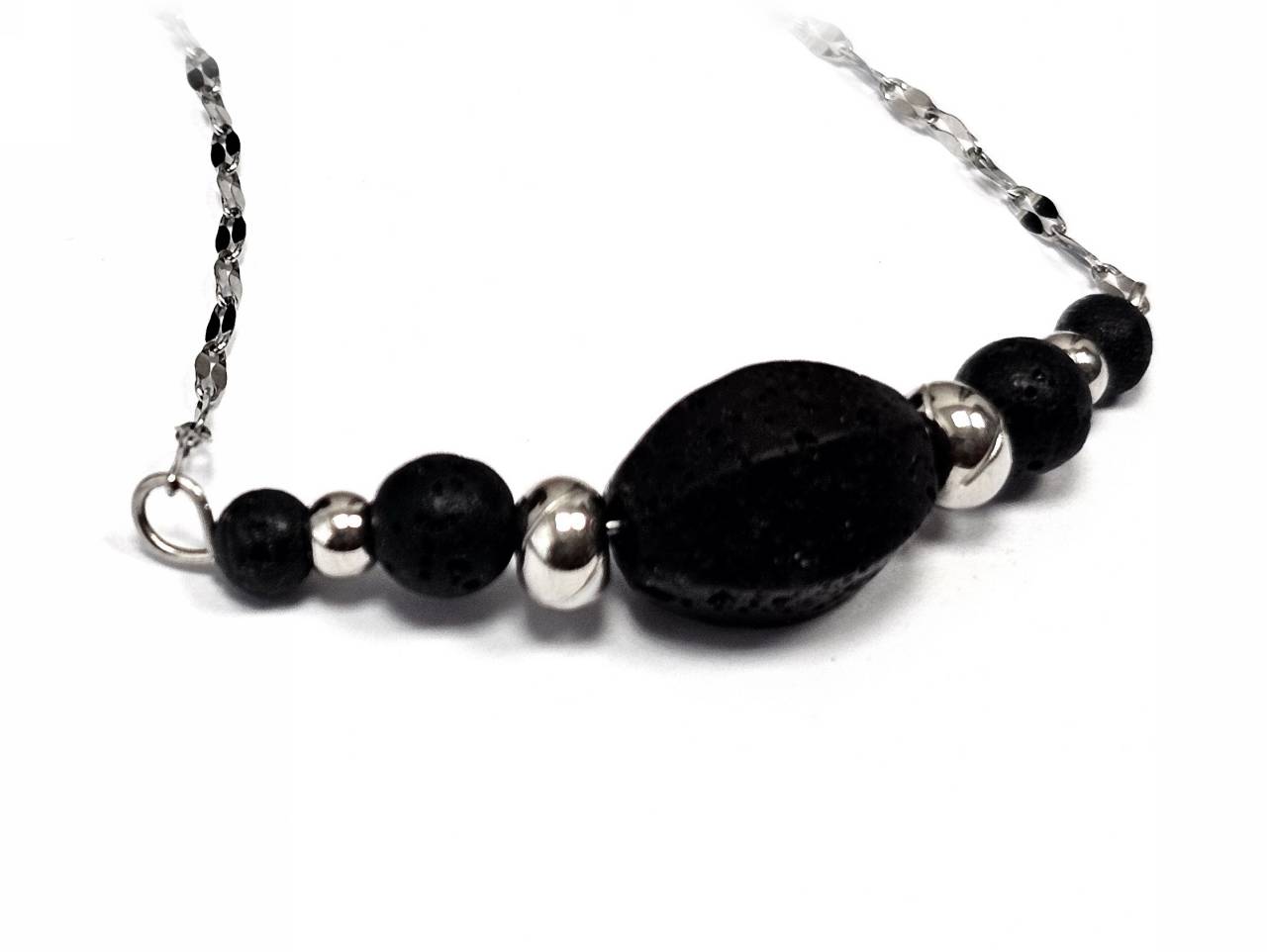 Κολιέ Πέτρα λάβα, ατσάλι σε χρώμα Ασημί