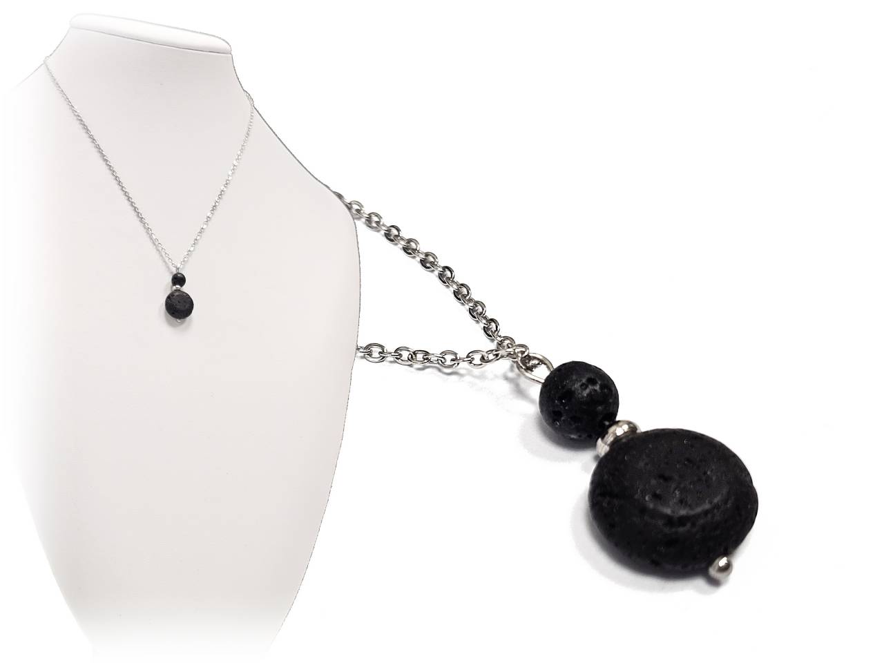 Κολιέ Πέτρα λάβα, ατσάλι σε χρ...